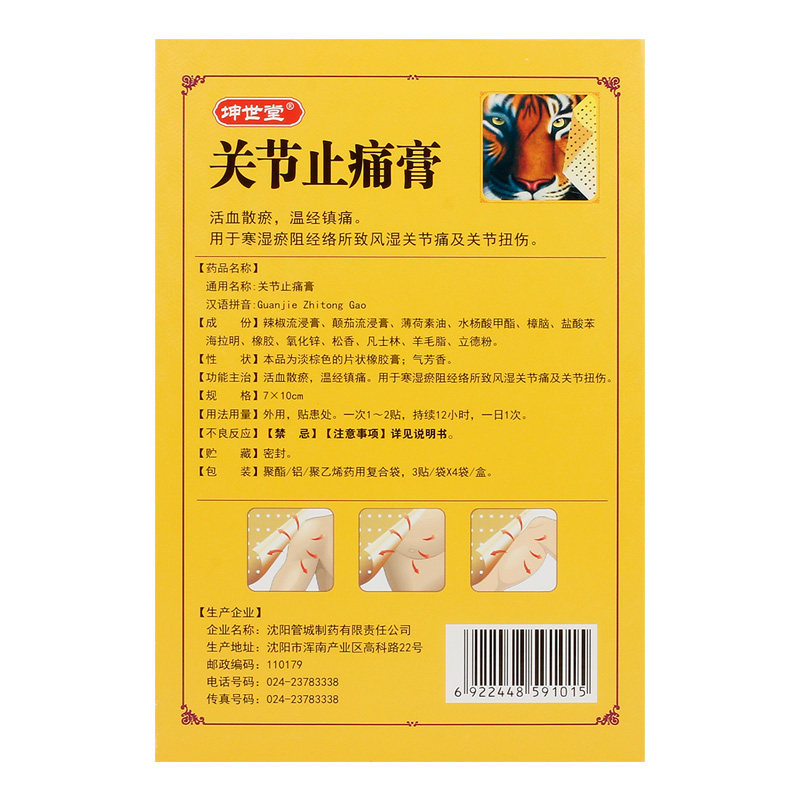 坤世堂 Крем для облегчения боли в суставах 3 наклейки*4 пакета изгнания из -за осушивания ветра и повреждения боли в артрозамете ветра и влажности, способствуя крови облегчения