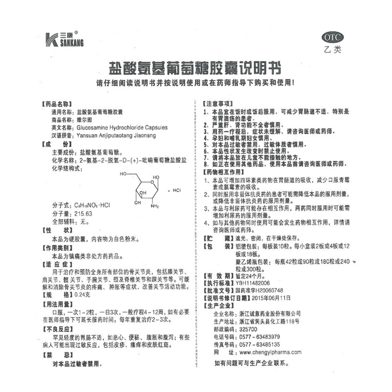 三康 Капсула гидрохлорида сахара 0,24 г*42 зерна/ящик артрит травма колена травма сустав