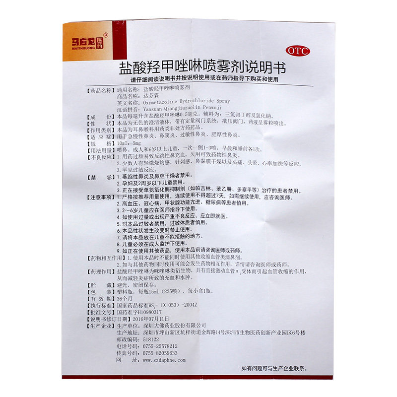 马应龙 Дайфенлин Гидроксил -гидроксилово -гидролитический спрей 15 мл Острый хронический аллергический ринит синусит.