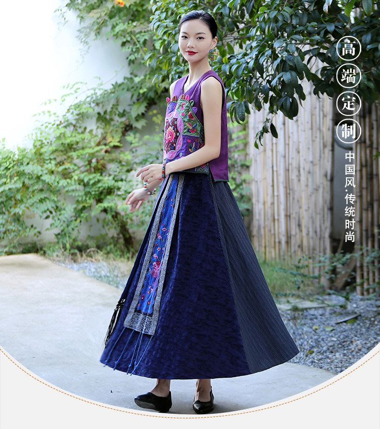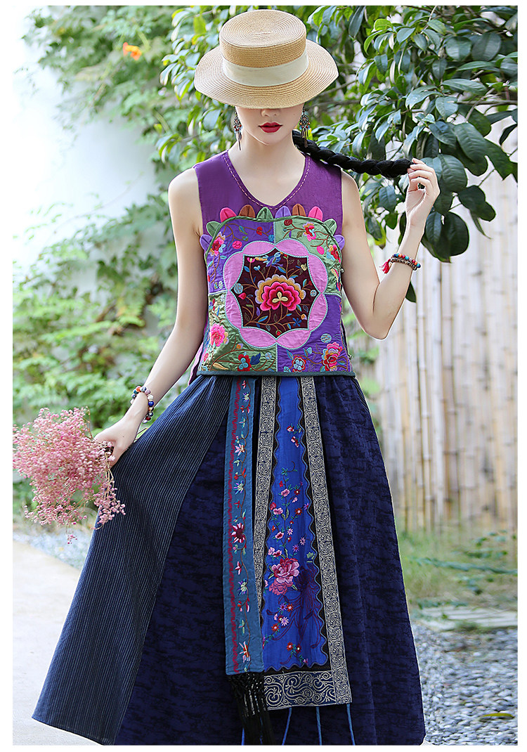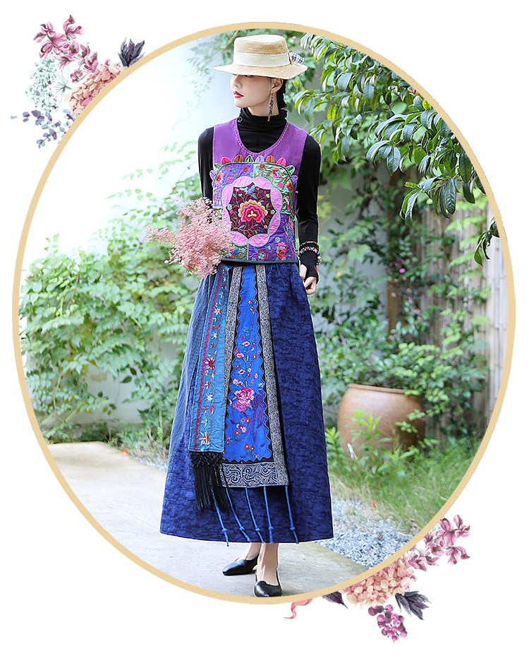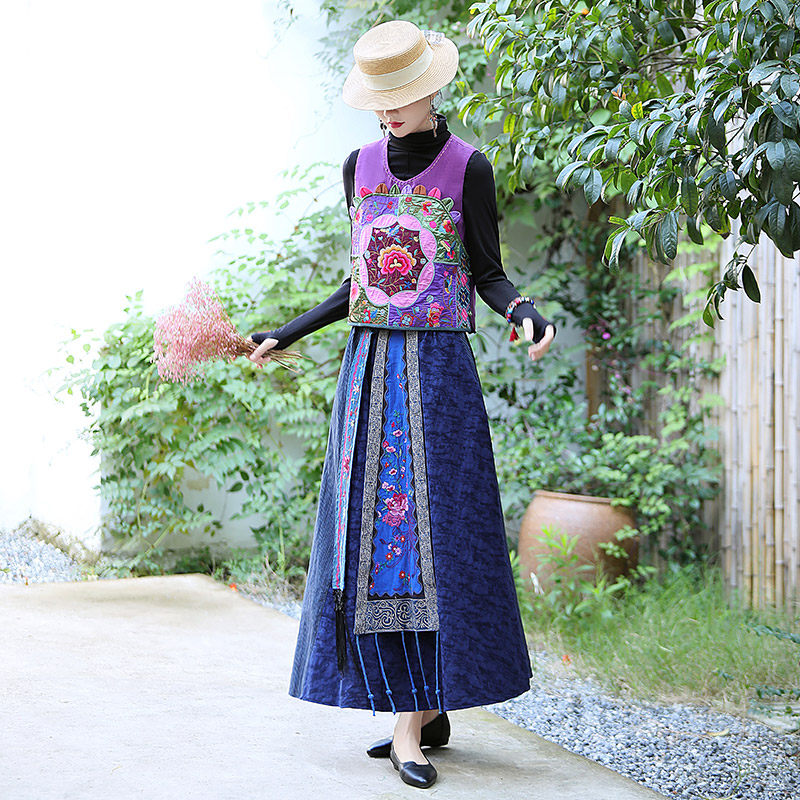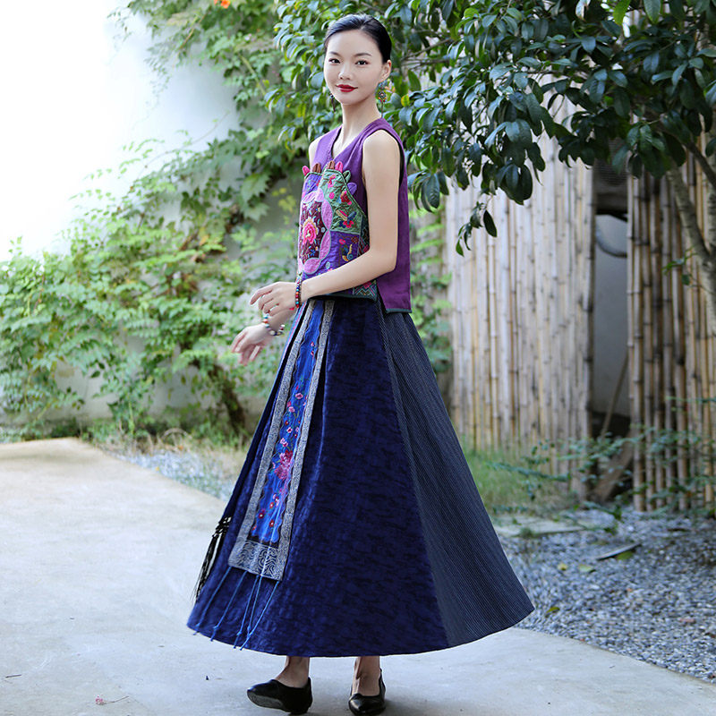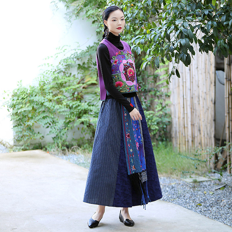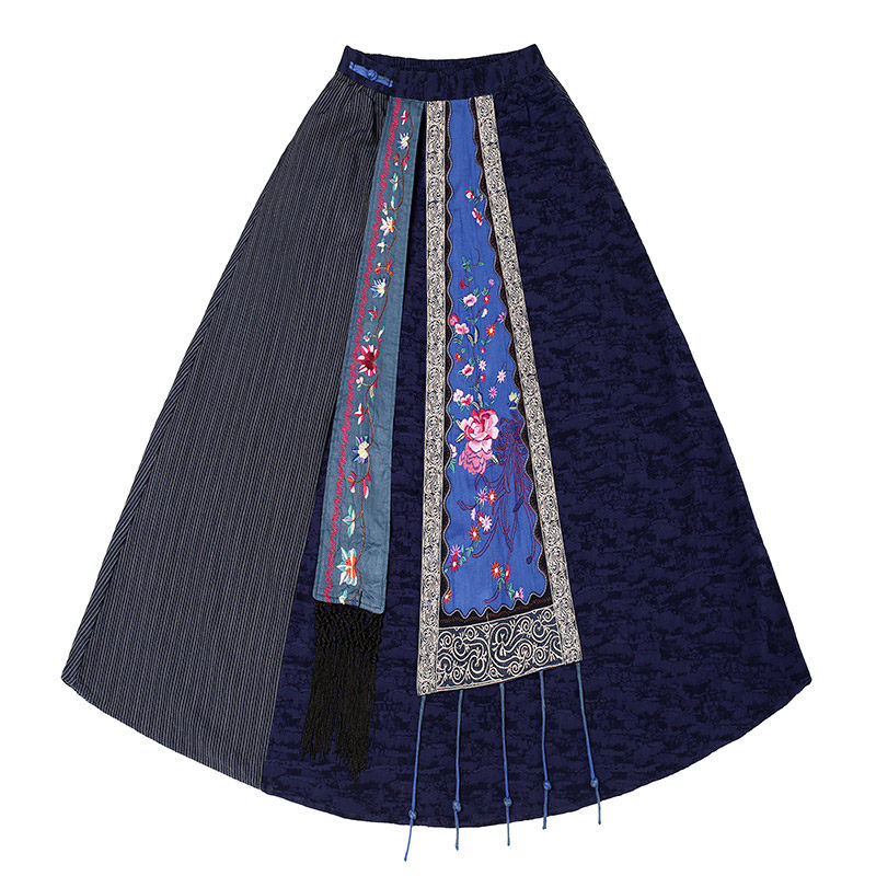 Этническая длинная юбка, этнический стиль, эластичная талия, высокая талия