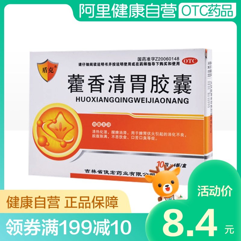 盾克 Капсулы Huoxiang Qing желудка 0,32G*40 Капсулы/коробка используются для неприятного дыхания, горечи, тепла, тепла, сырости и расстройства желудка