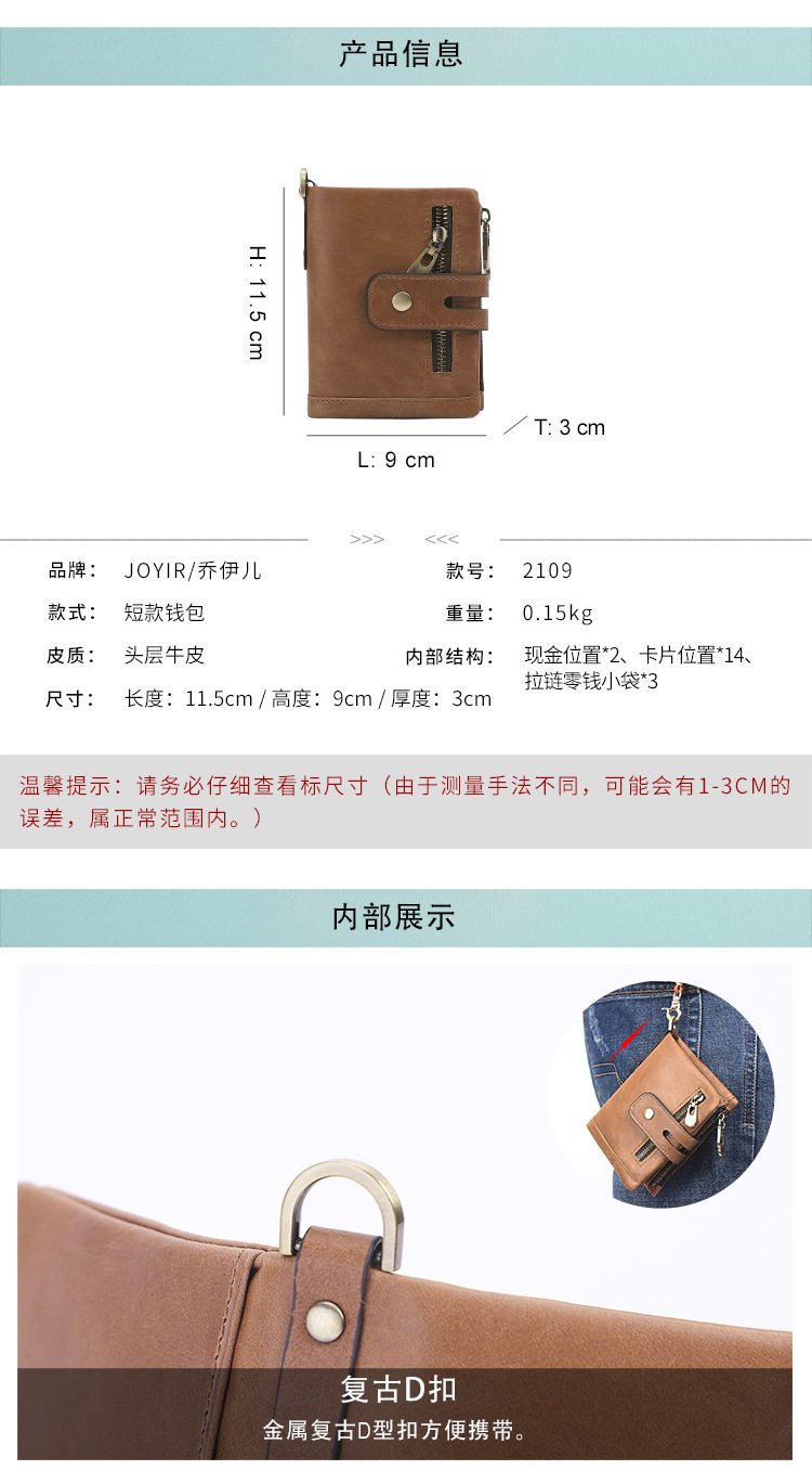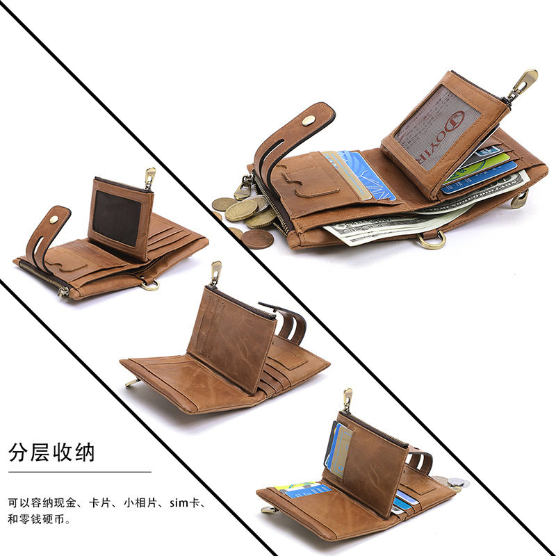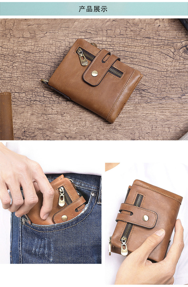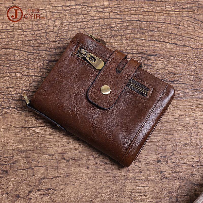 Короткий бумажник, кожаный ретро картхолдер для жирной кожи, из натуральной кожи, воловья кожа