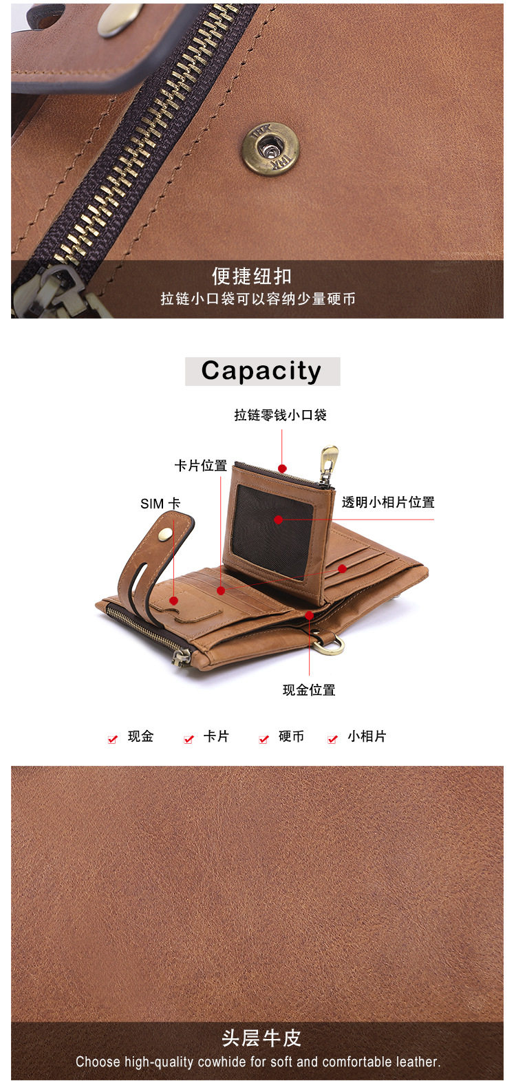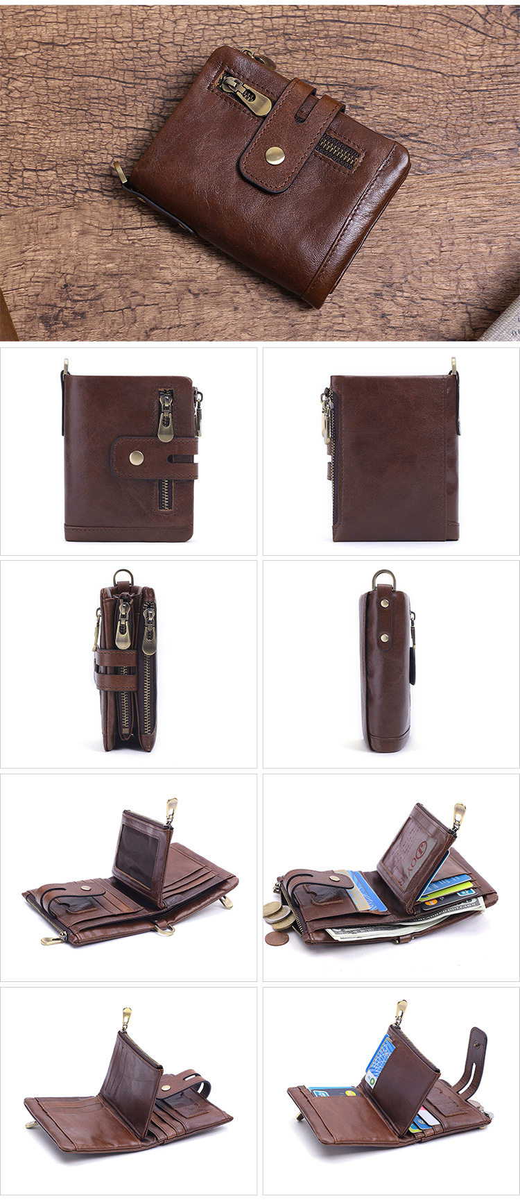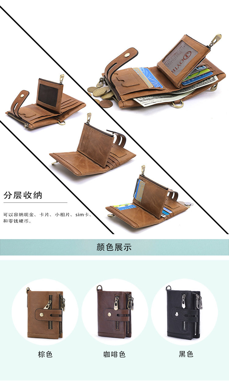 Короткий бумажник, кожаный ретро картхолдер для жирной кожи, из натуральной кожи, воловья кожа