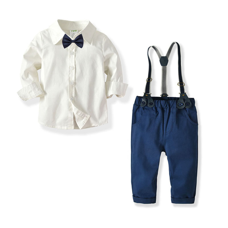 Осеннее белое платье, темно-синяя рубашка, детские штаны, комплект