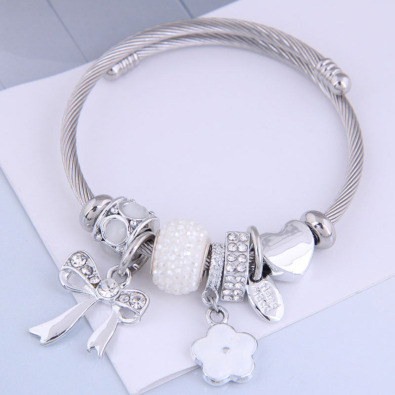 Модный металлический универсальный аксессуар с бантиком, браслет, европейский стиль, в цветочек