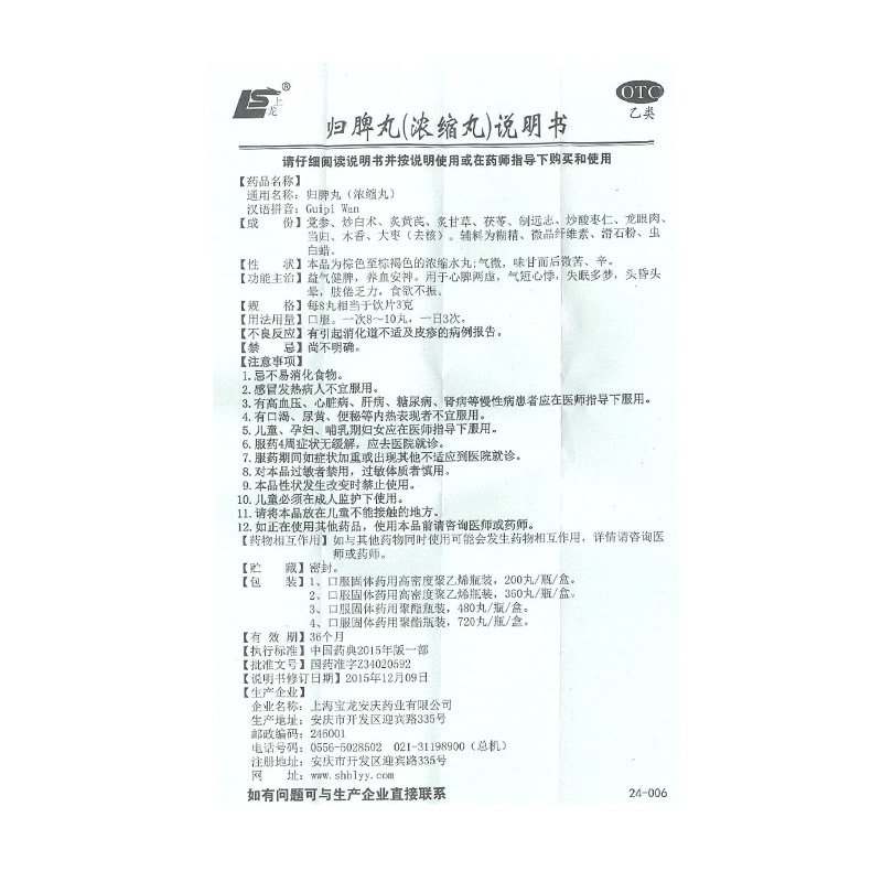 上龙 Таблетки Guipi (концентрированные таблетки) 200 таблетки, чтобы поднять кровь и спасти бессонницу, мечту, мечту, волосы, черные волосы, император ци и короткие температуры