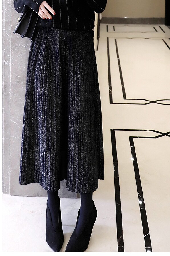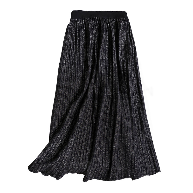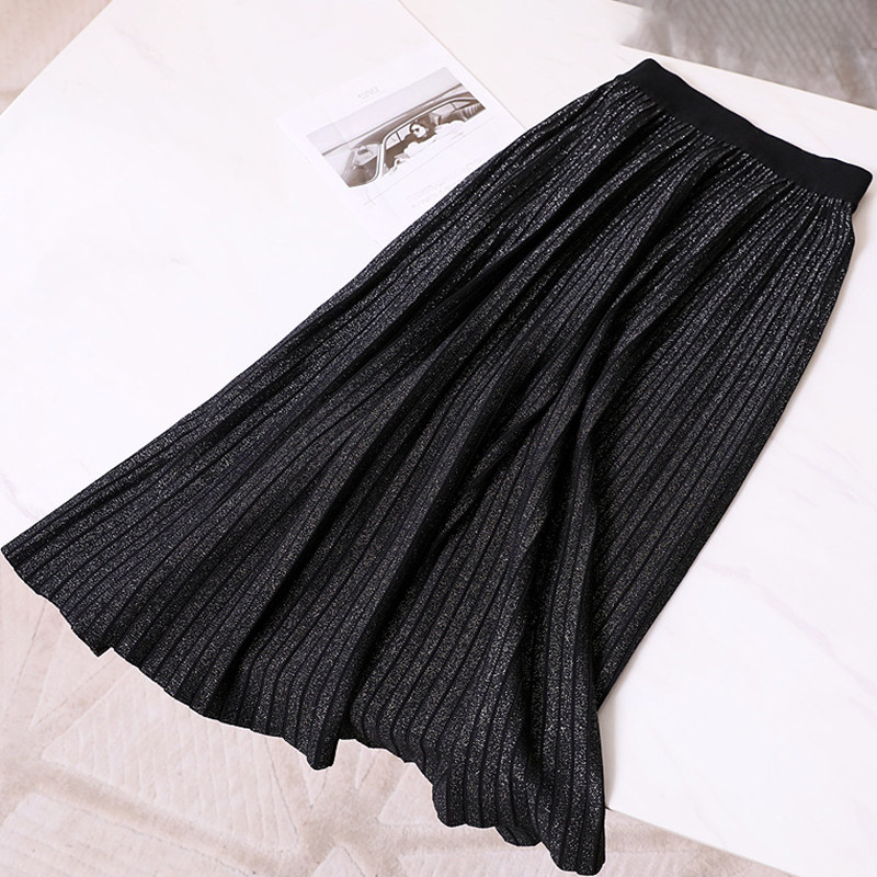 Демисезонная длинная трикотажная юбка в складку, средней длины, высокая талия, А-силуэт