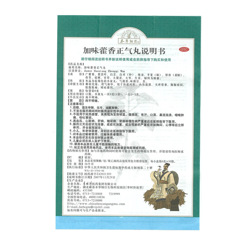 本草纲目 Добавить аромат huoxiangzhengqi pill 6g*10 мешков/гранул диареи головная боль селезенка и дефицит желудка, холодная рвота, боль в животе