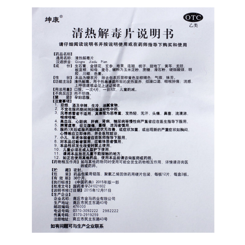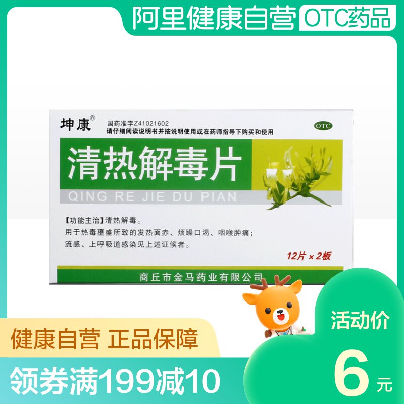 坤康 Прозрачная тепло и детоксикация таблетки 24 таблетки/коробка вирусная холода Эпидемия Популярная холодная желудочно -кишечный тип холодный взрослый