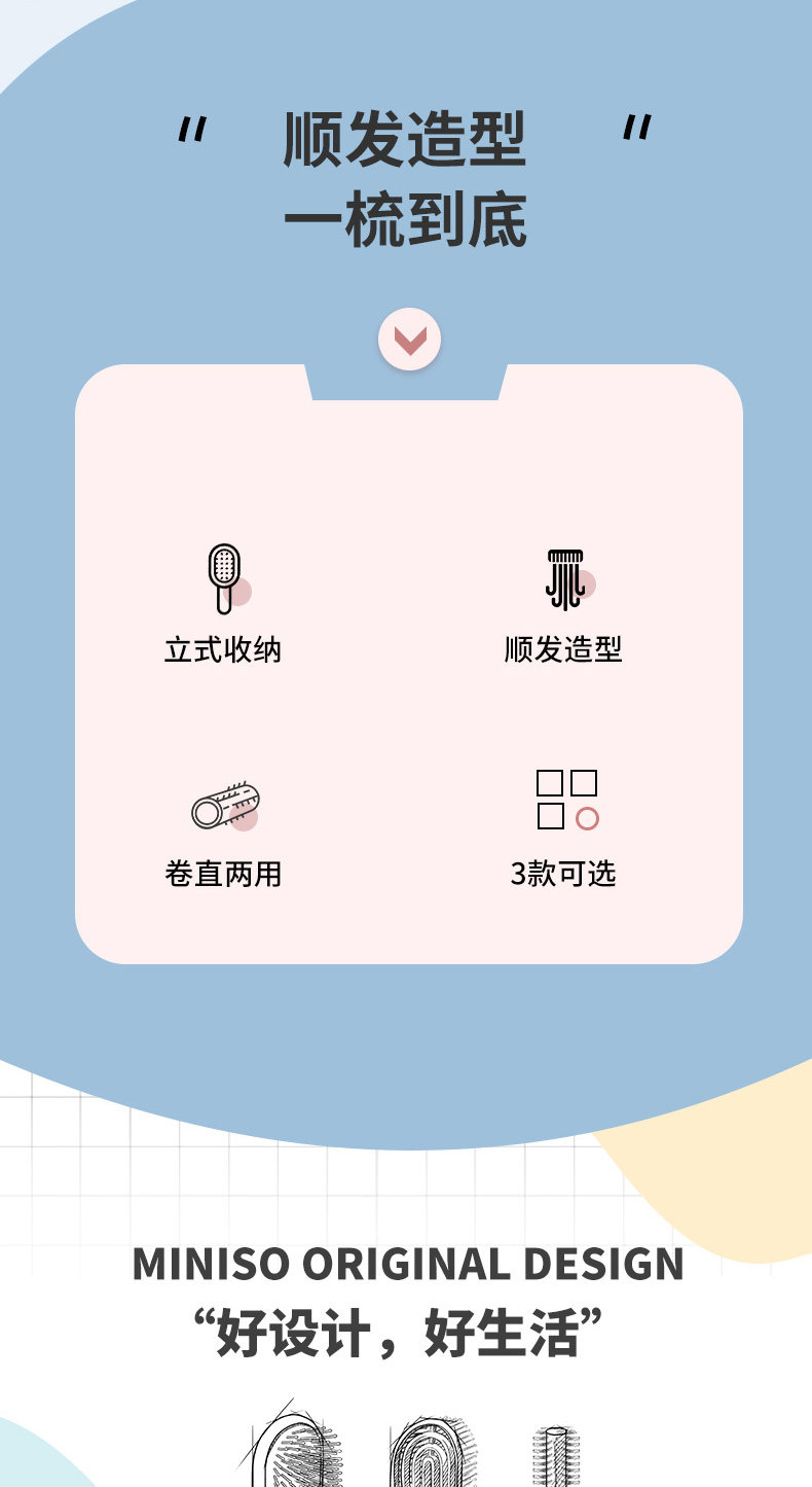 Miniso, кудрявая подушка безопасности, антистатическая электрическая маленькая портативная расческа