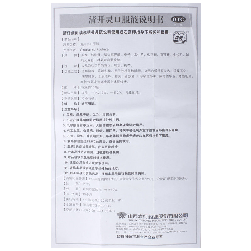 漳河 Qingkai Ling Oral Liquid 10 мл*10 Сили/ящик вирусный холодный ветер, холодный холод, полагаясь на детоксикацию и нагревание