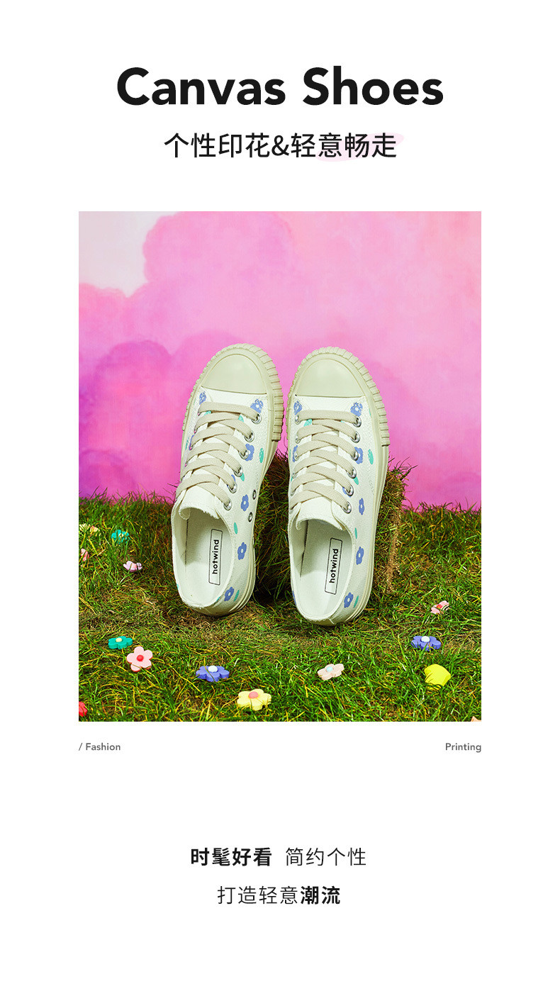 Hotwind/热风 Низкие парусиновые туфли, женские туфли на плоской подошве, новинка весны 2021, женская модная повседневная обувь