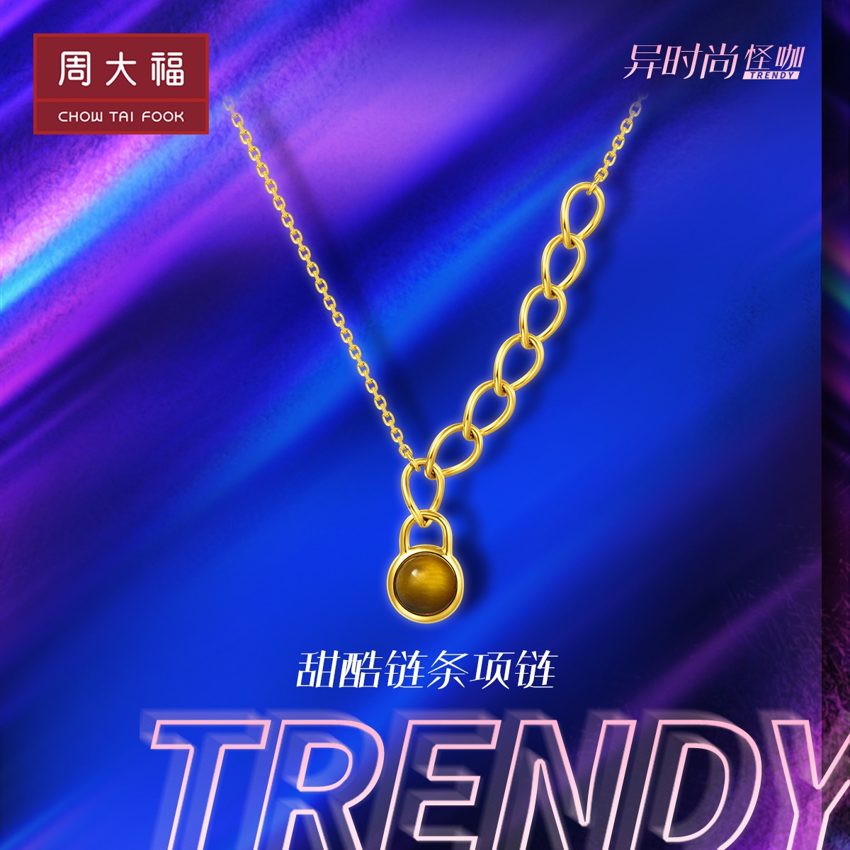 周大福 Модная цепь, ожерелье, подвеска, золото 750 пробы