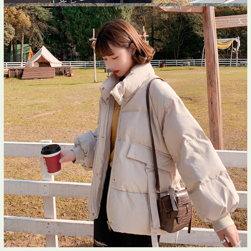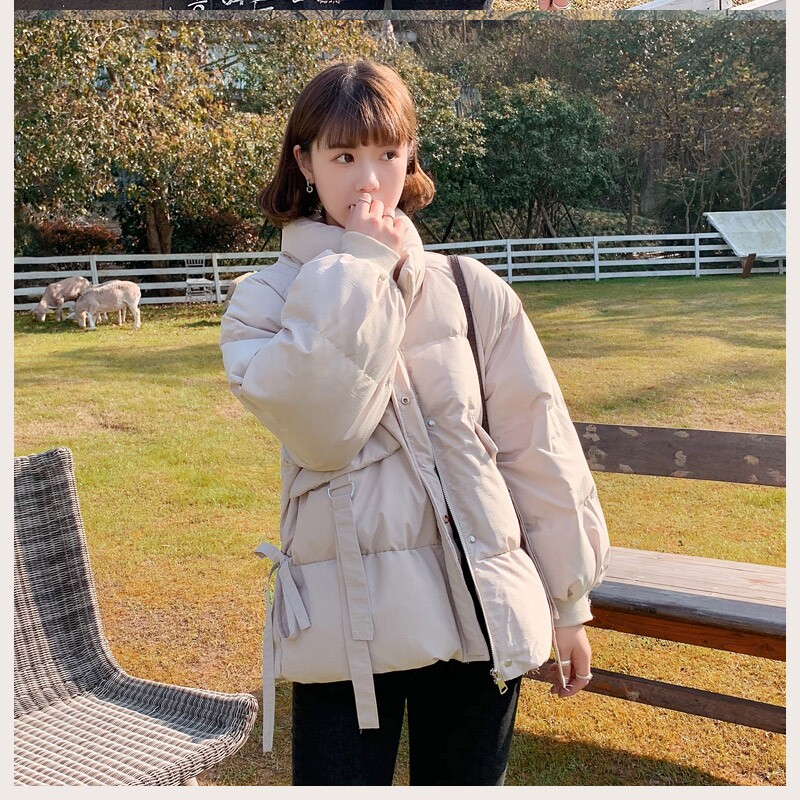 Зимний пуховик с пухом, короткая куртка, лонгслив, в корейском стиле, свободный крой, увеличенная толщина