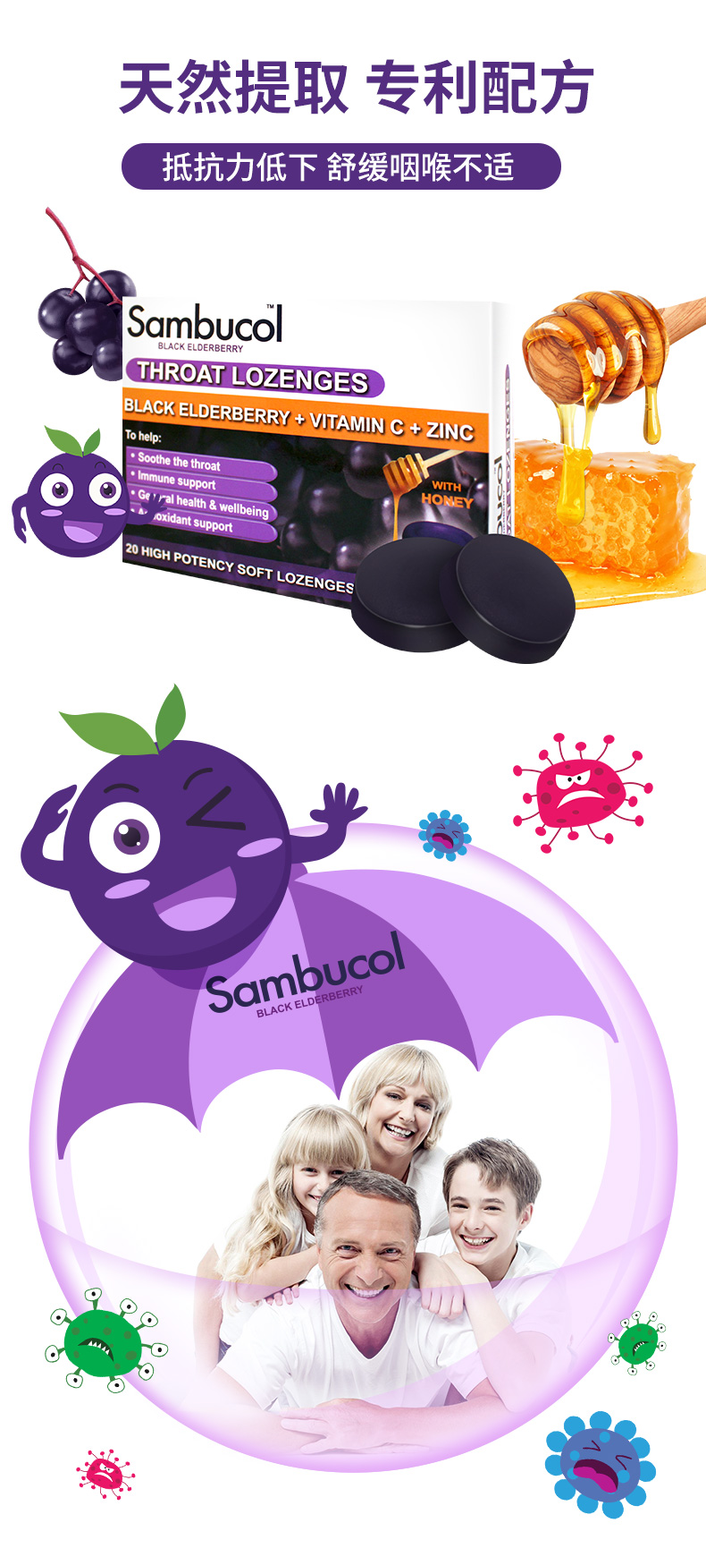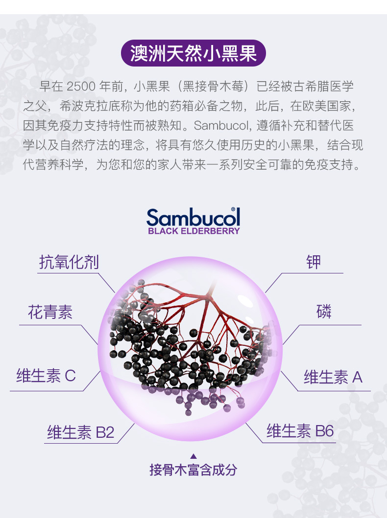 Австралия импортировала санбукол маленькие черные фрукты черная костяная древесина VC плюс цинк -витамин С мед, барабанная перепонка, горло с ломтиками