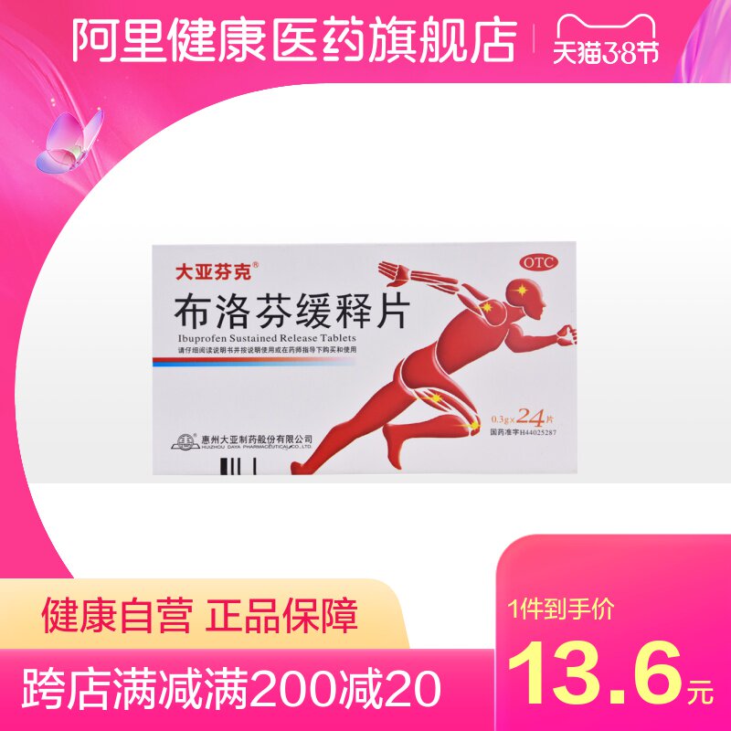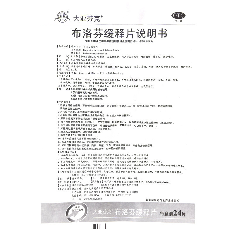 大亚芬克 Ибупрофен медленные таблетки 0,3 г*24 таблетки/бока/бокс, лихорадка, дисменорея, невралгия