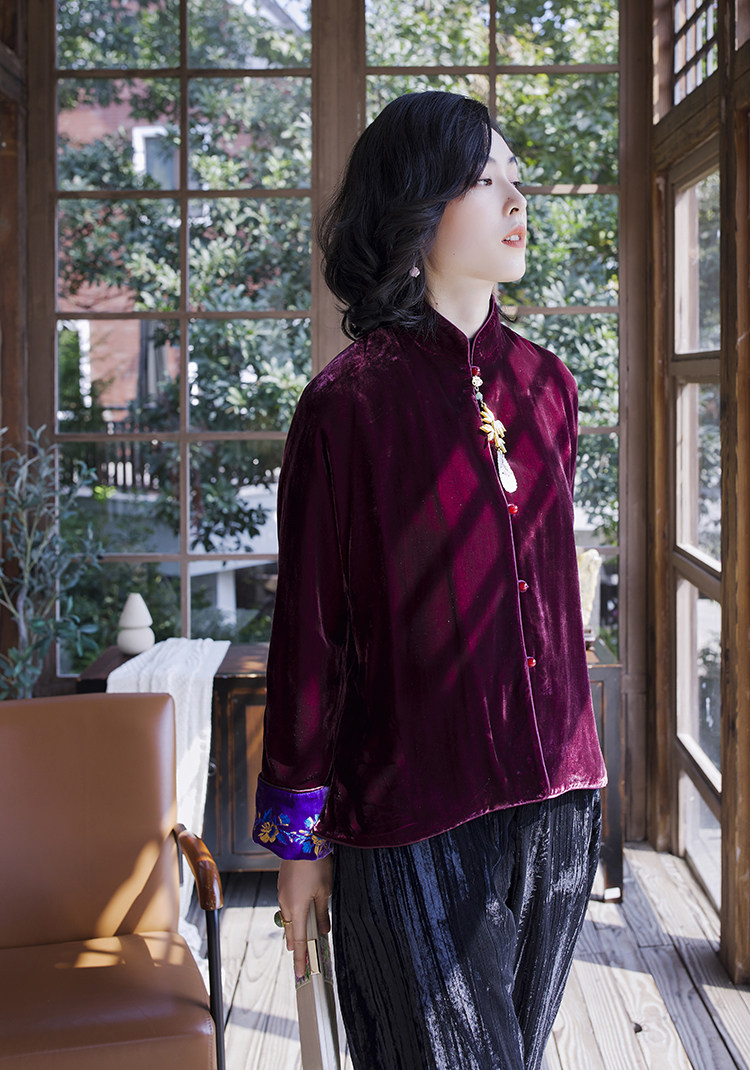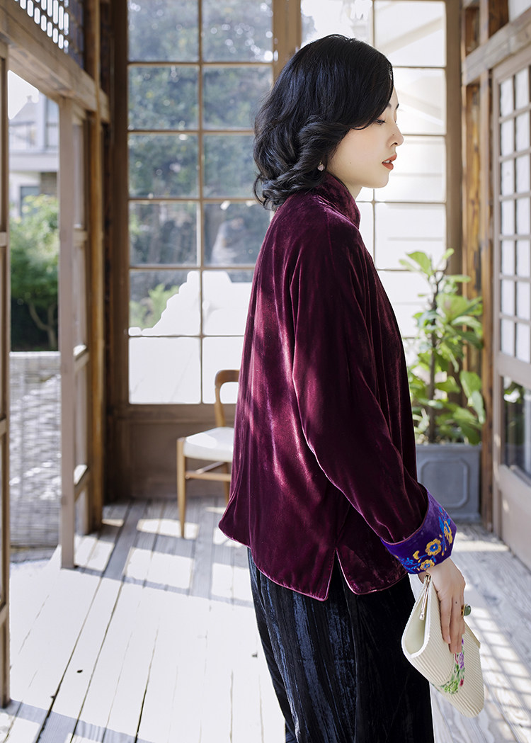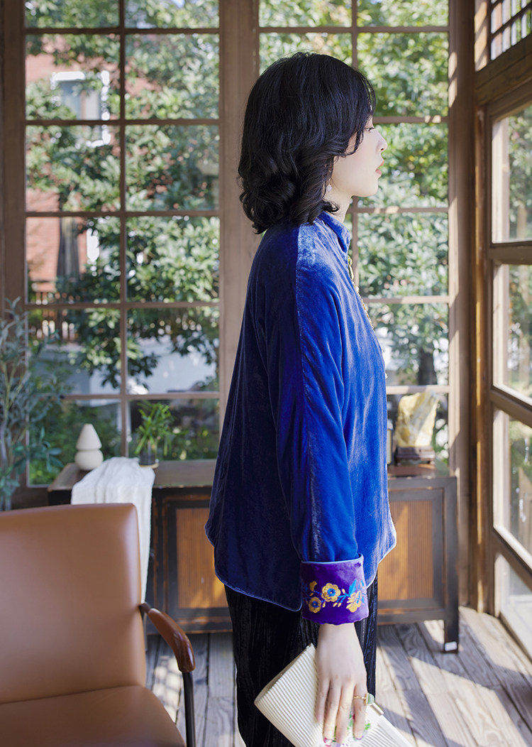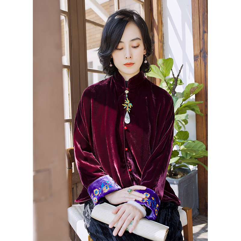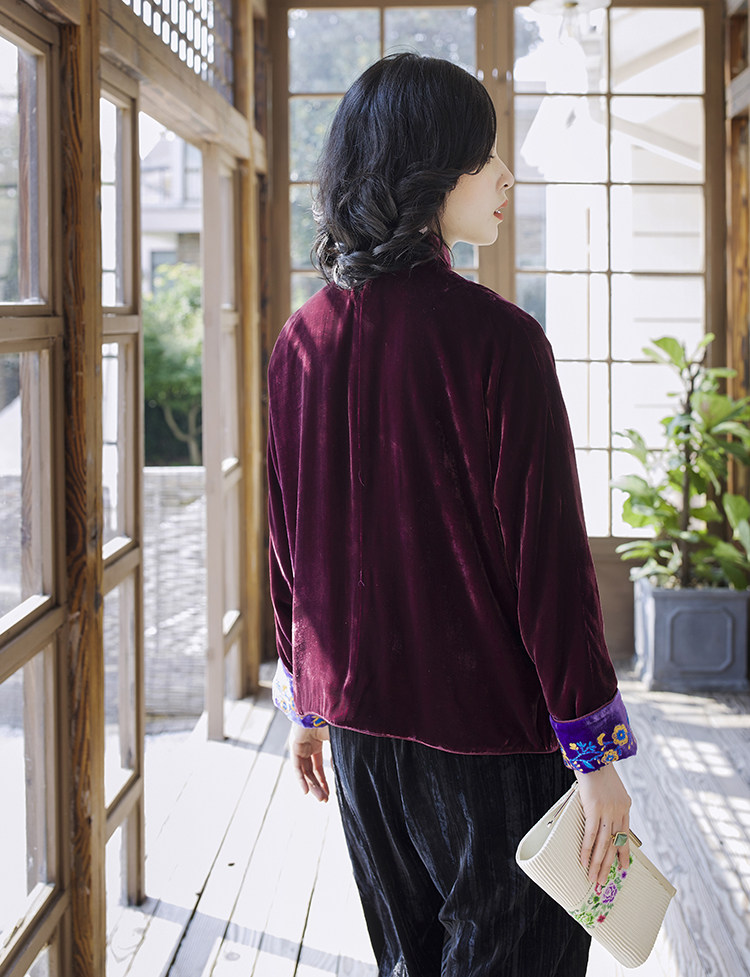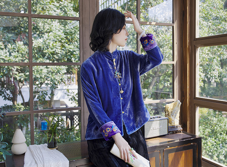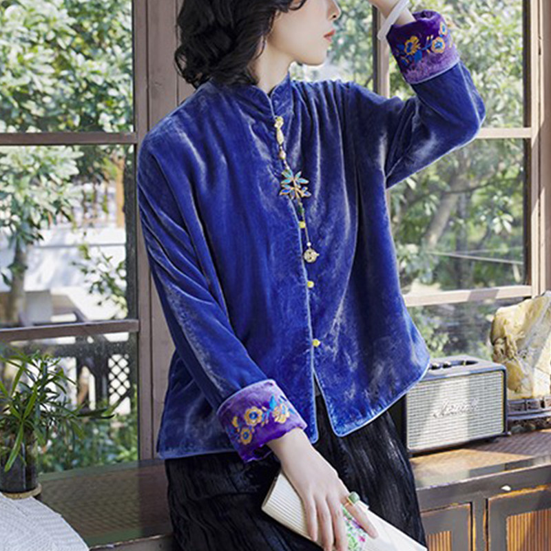 Хорошая репутация PCY459, бархатные вышитые ретро повседневные короткие куртки с вышивкой для женщин осенью и зимой