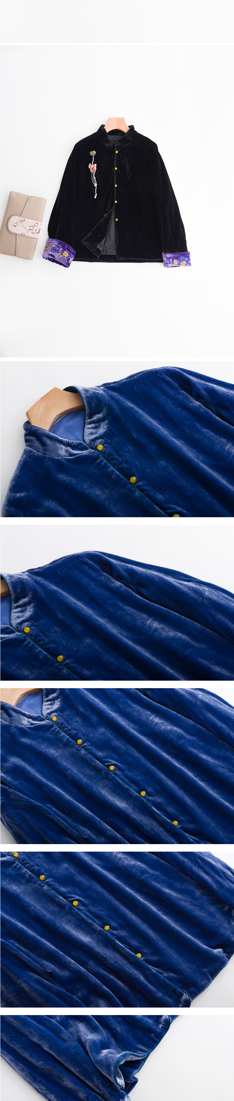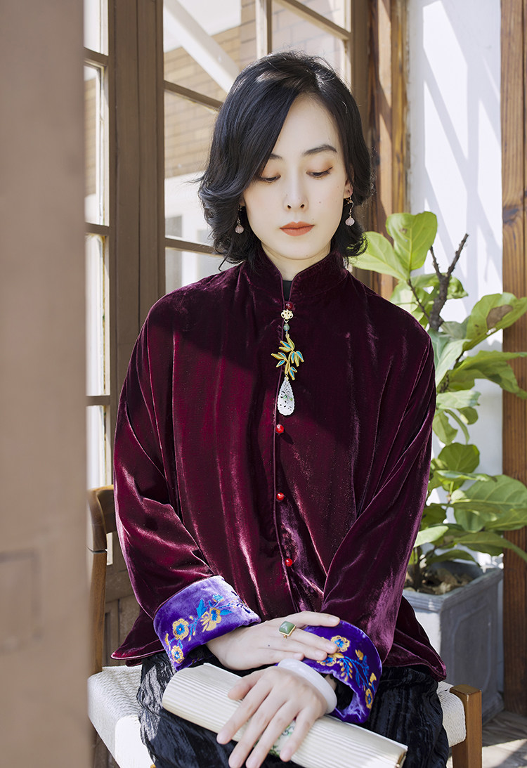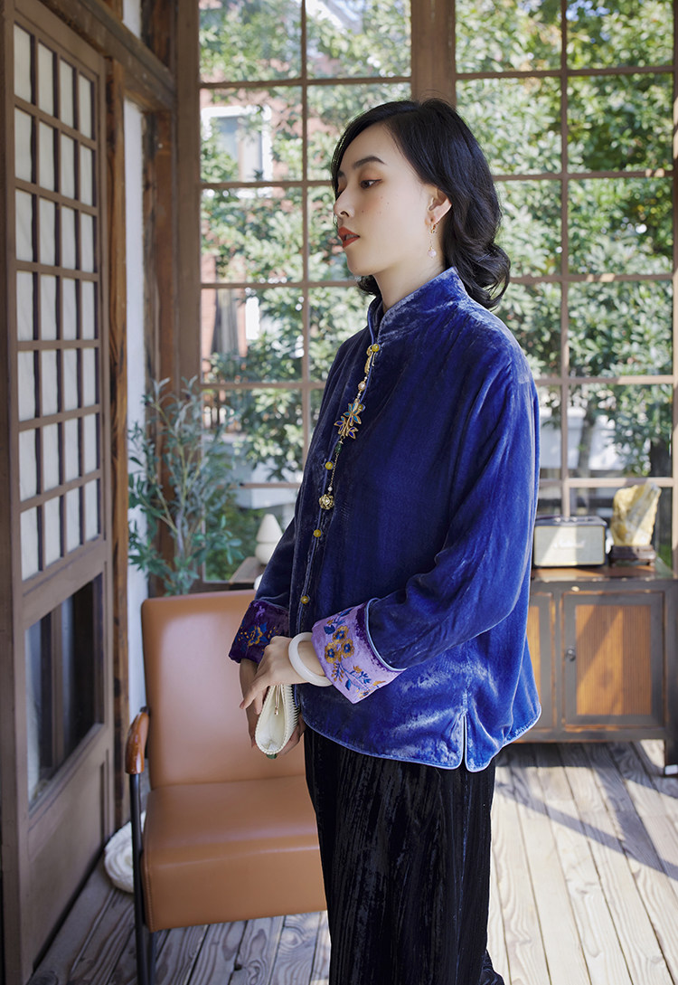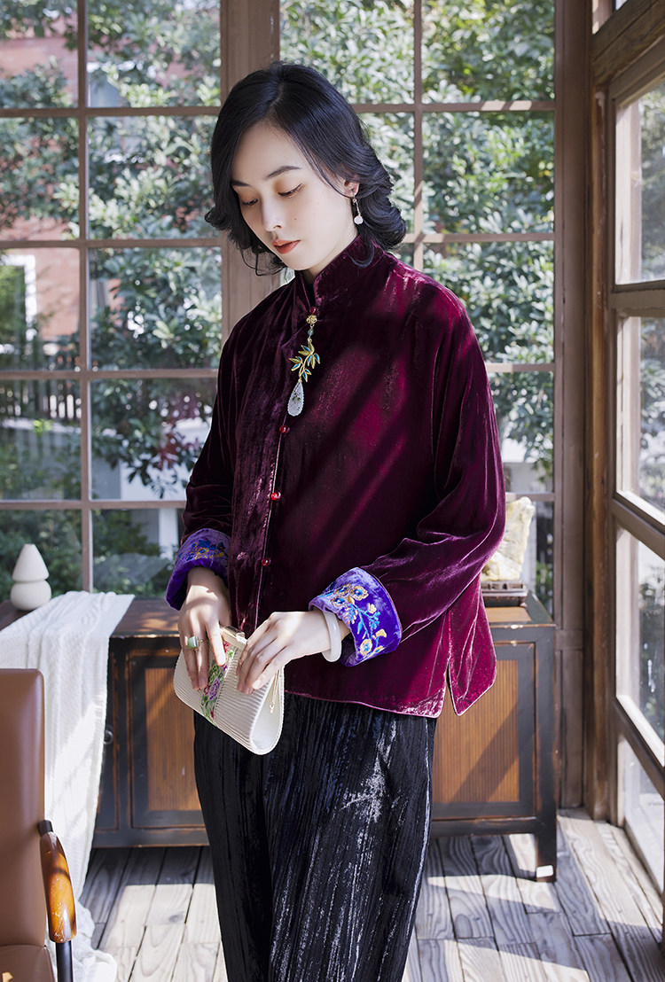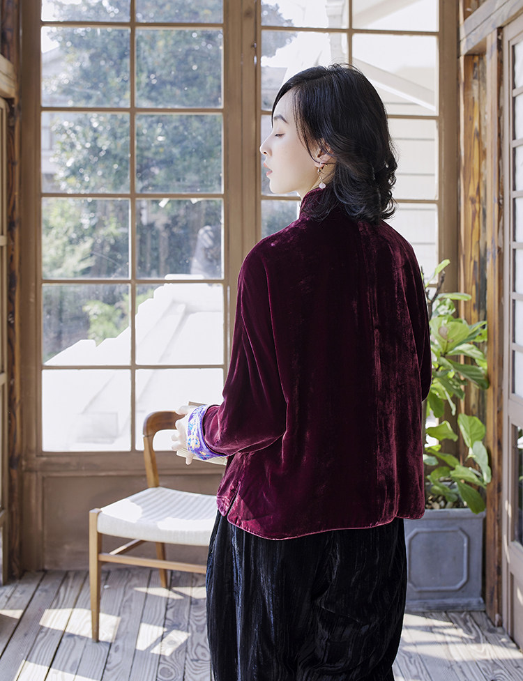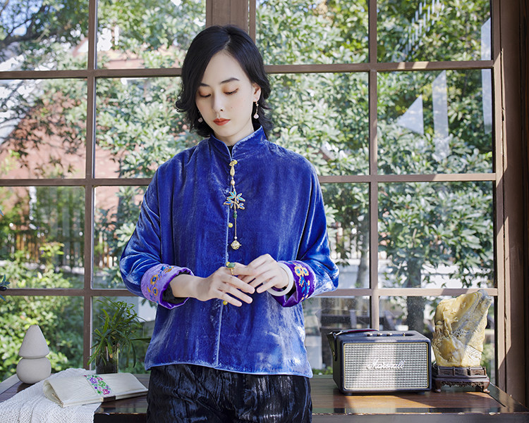 Хорошая репутация PCY459, бархатные вышитые ретро повседневные короткие куртки с вышивкой для женщин осенью и зимой