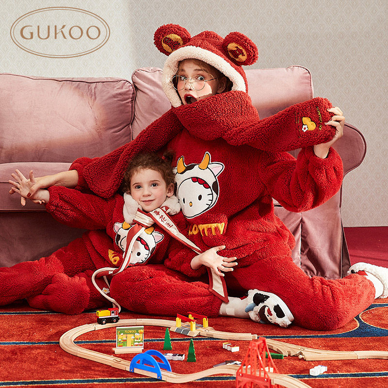 Gukoo/果壳 Hello Kitty, демисезонная коралловая пижама, мультяшный бархатный комплект