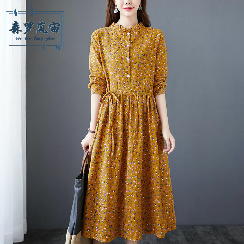 Демисезонный этнический лонгслив, ремень, корсет, длинная юбка, городской стиль, этнический стиль, из хлопка и льна, большой размер, средней длины