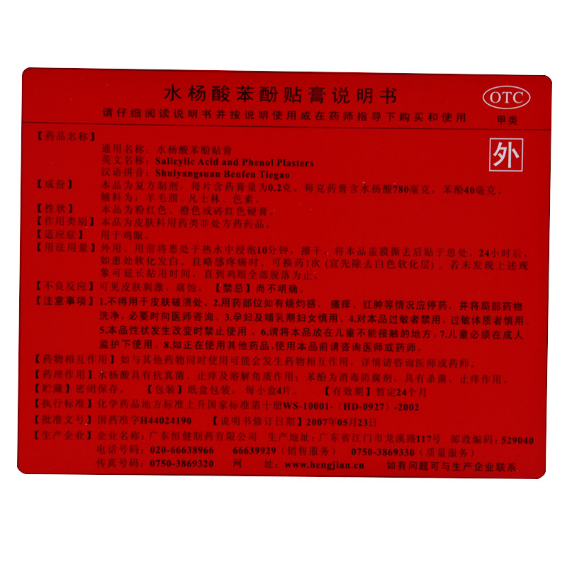 李夫人 Сальмонная кислота фенола -фенол паста 4 таблетки/коробка куриные наклейки и мозоли, мертвая кожа, утолщение моха