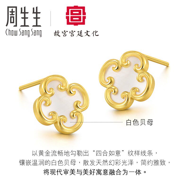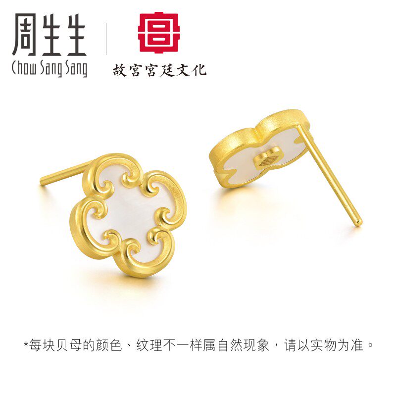 周生生 Золотой (Золотой) Дворцовый дворец культура Co -Brice Series Fritillarus Серьги 92040E