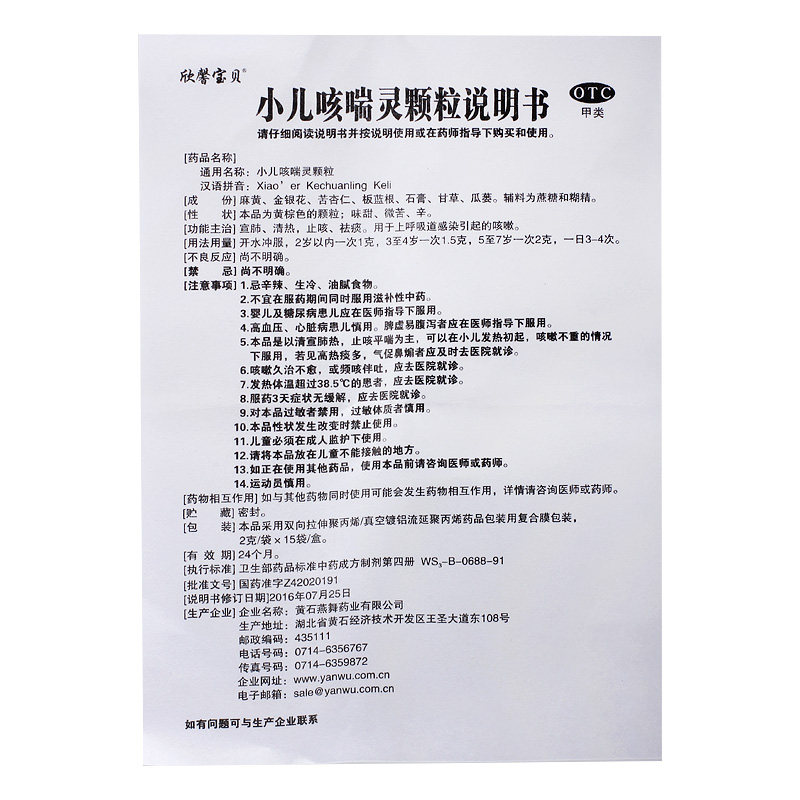 欣馨宝贝 Детский кашель 2G*15 мешков/коробки на доске инфекция дыхательных путей Дети кашляют дети