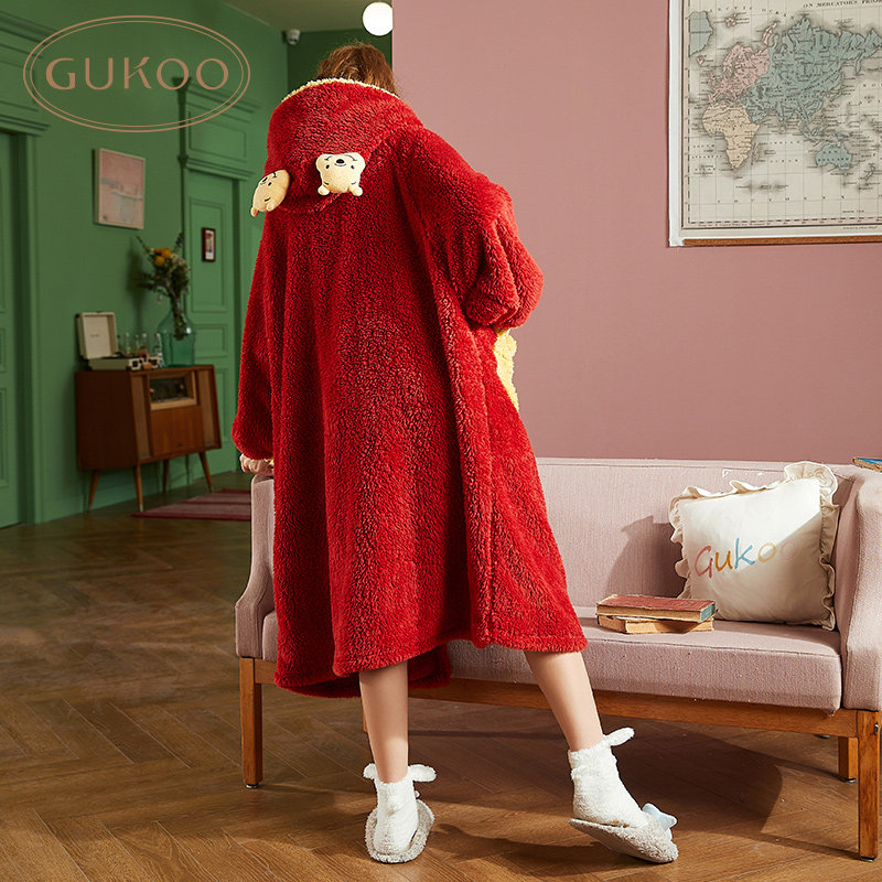 Gukoo/果壳 Дисней, демисезонная коралловая пижама, мультяшный бархатный банный халат для отдыха