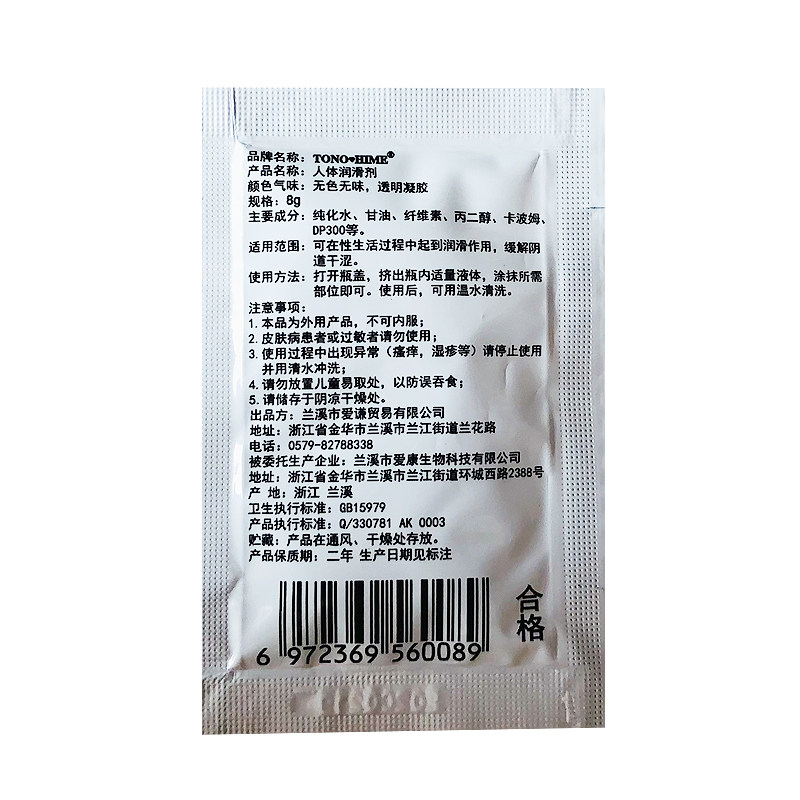 Водорастворимая физиологичная портативная смазка для путешествий, 8г