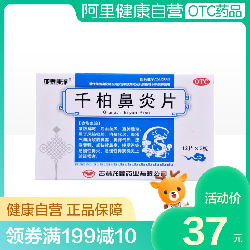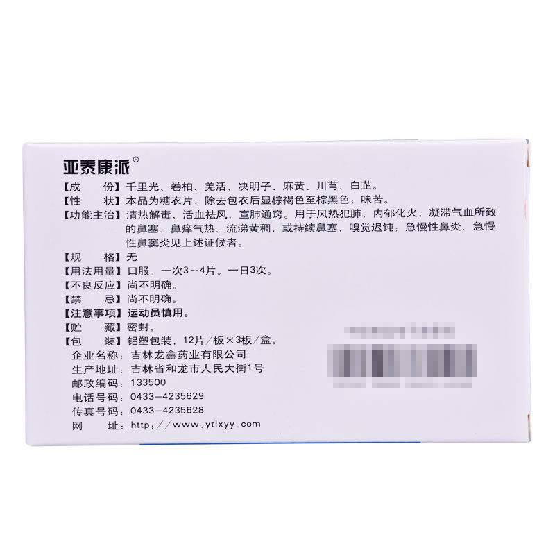 亚泰康派 Тысячи таблеток ринита 36 таблетки/коробка срочный хронический ринит Священные назальные заторы Очистки тепла и детоксикация крови, детоксикация тепловых преступных легких