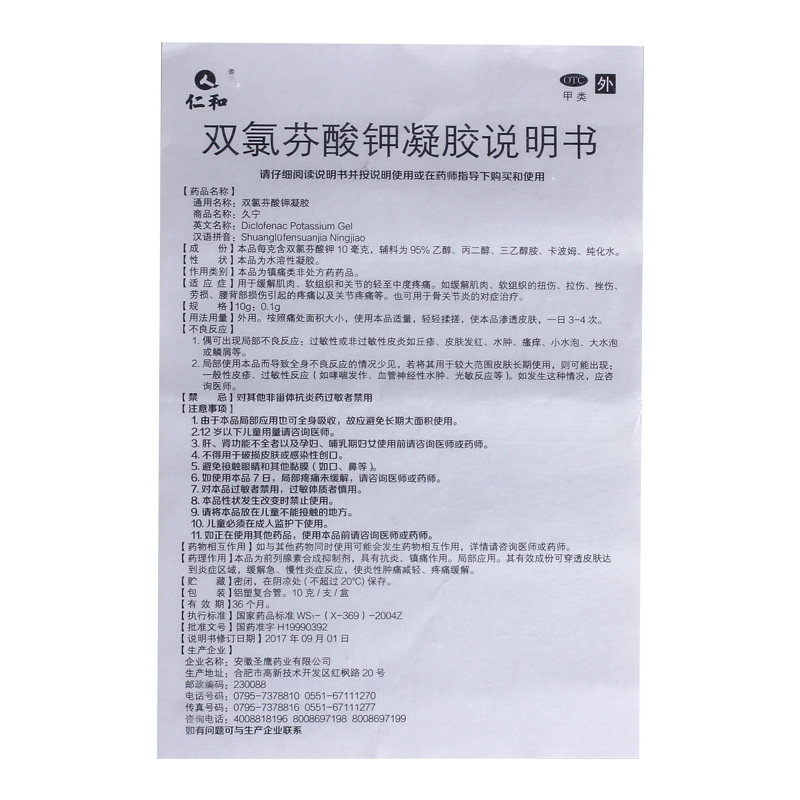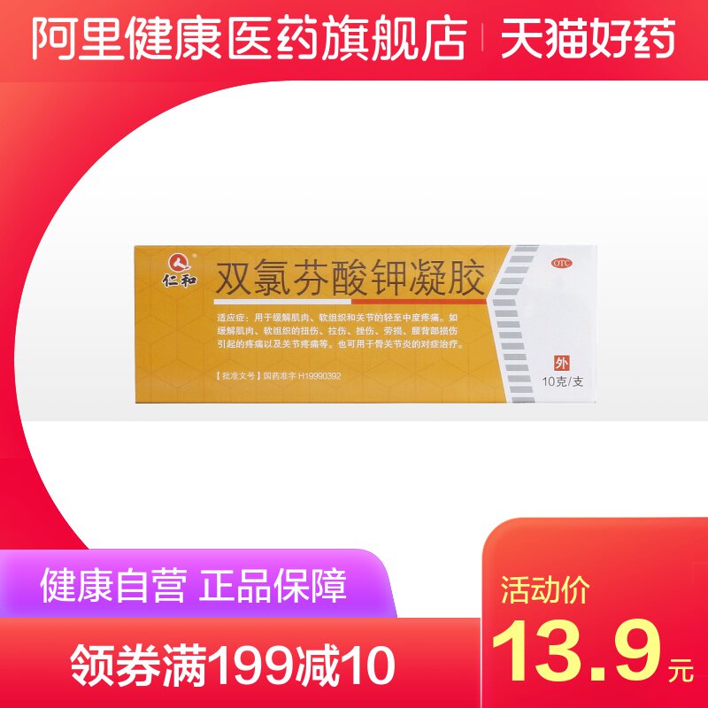 仁和 Диклофенак калия гель 10 г мазь от боли в мышцах и суставах, растяжение связок, ушиб, лекарство от боли в пояснице
