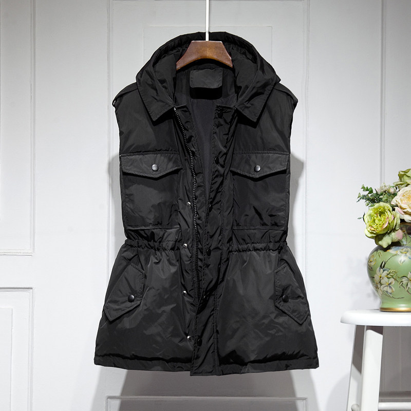 Длинная толстовка с капюшоном с пухом, зимний жилет, бархатный корсет, пуховик без рукавов, средней длины, коллекция 2021, утиный пух