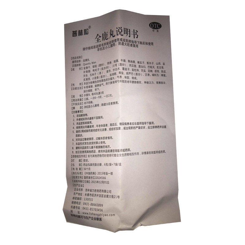 普林松 Quan Shikamaru 6G*7 мешков/боксарская частота усталость, усталость, селезенка и почки, две поясничные и коленные боль, мягкий, холодный, страх перед холодом
