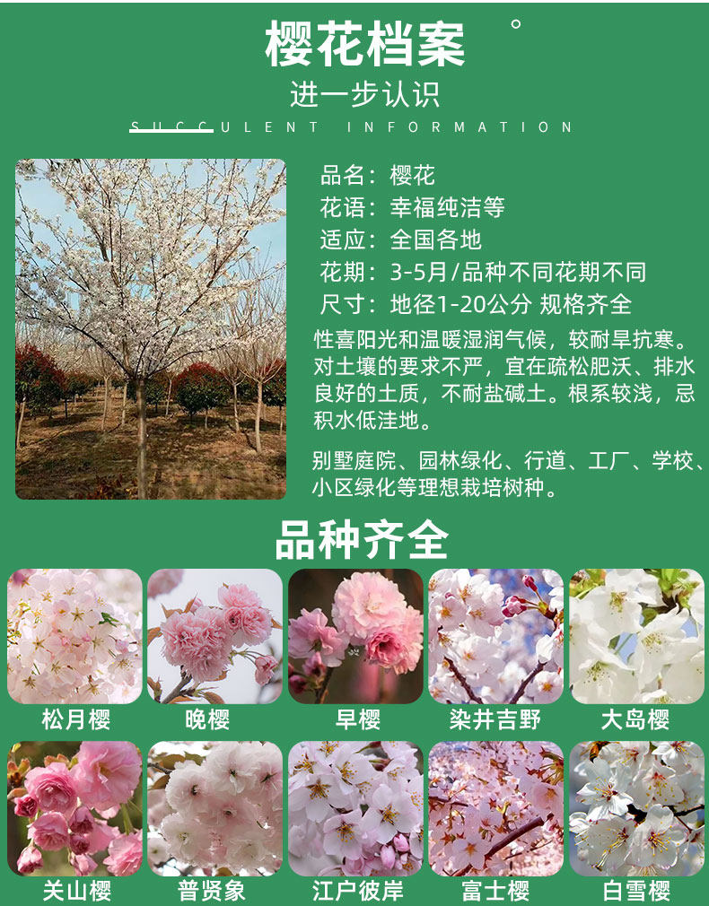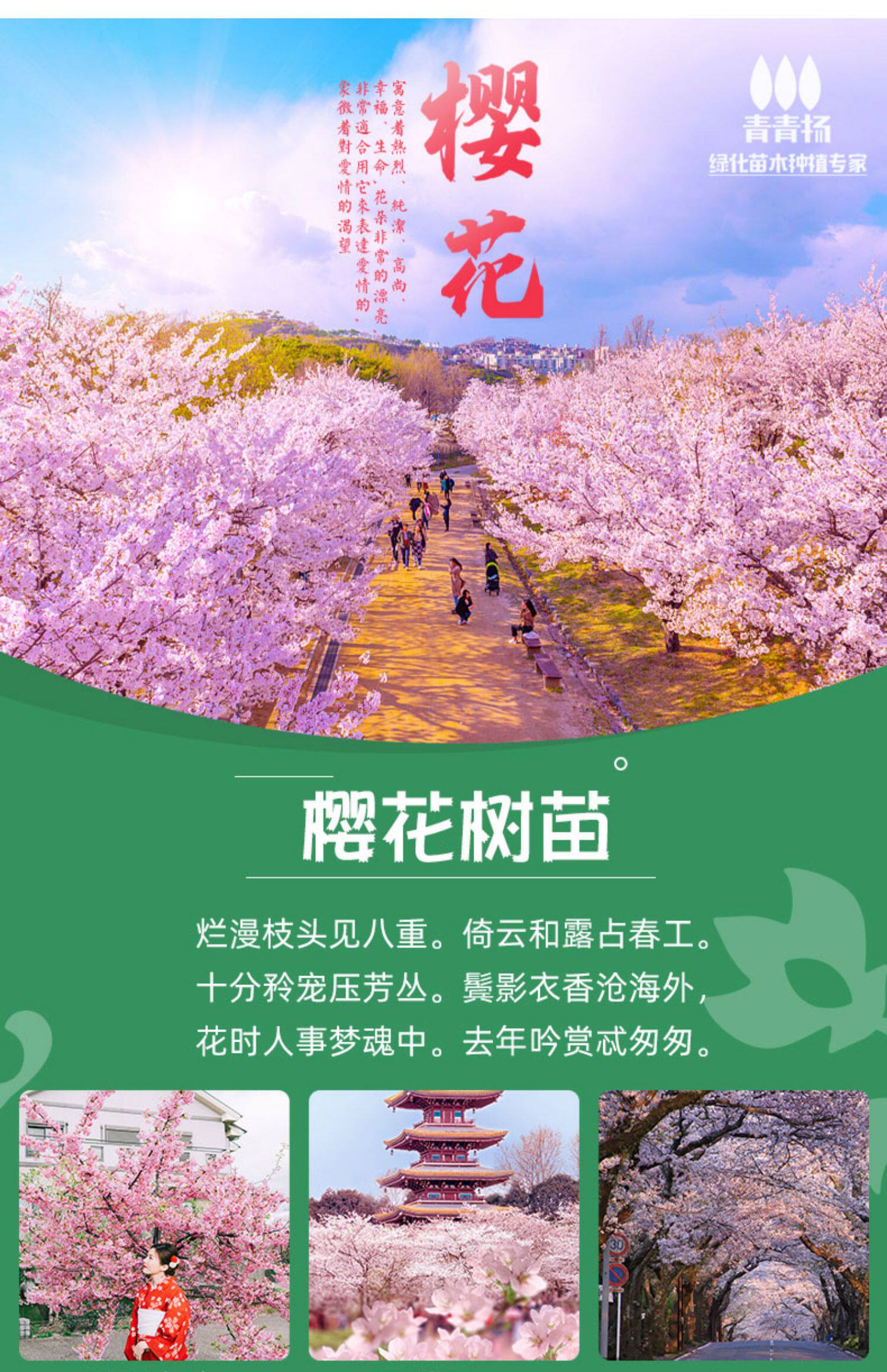Саженец японской вишни садовый пейзаж вишневое дерево поздняя вишня большое дерево Сомеи Ёсино юг и север зеленые саженцы