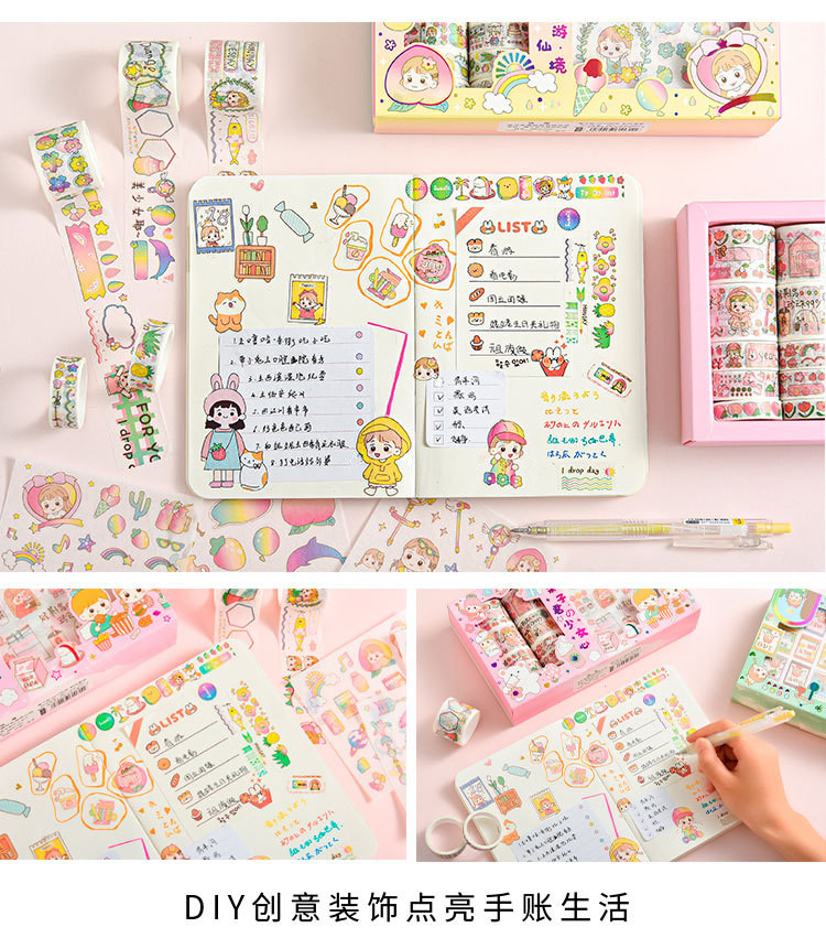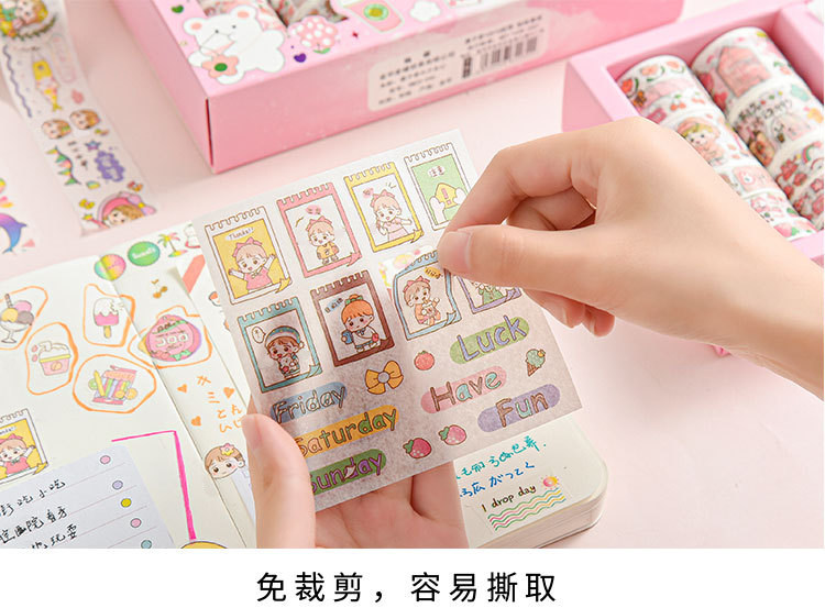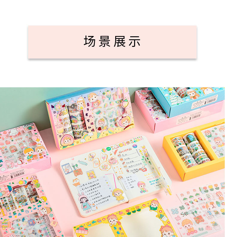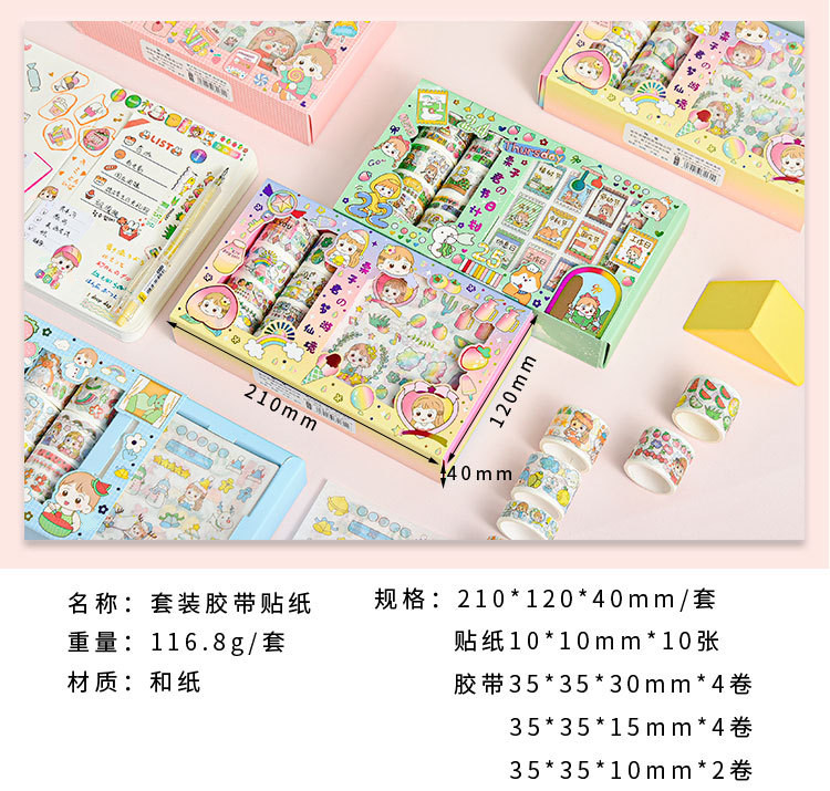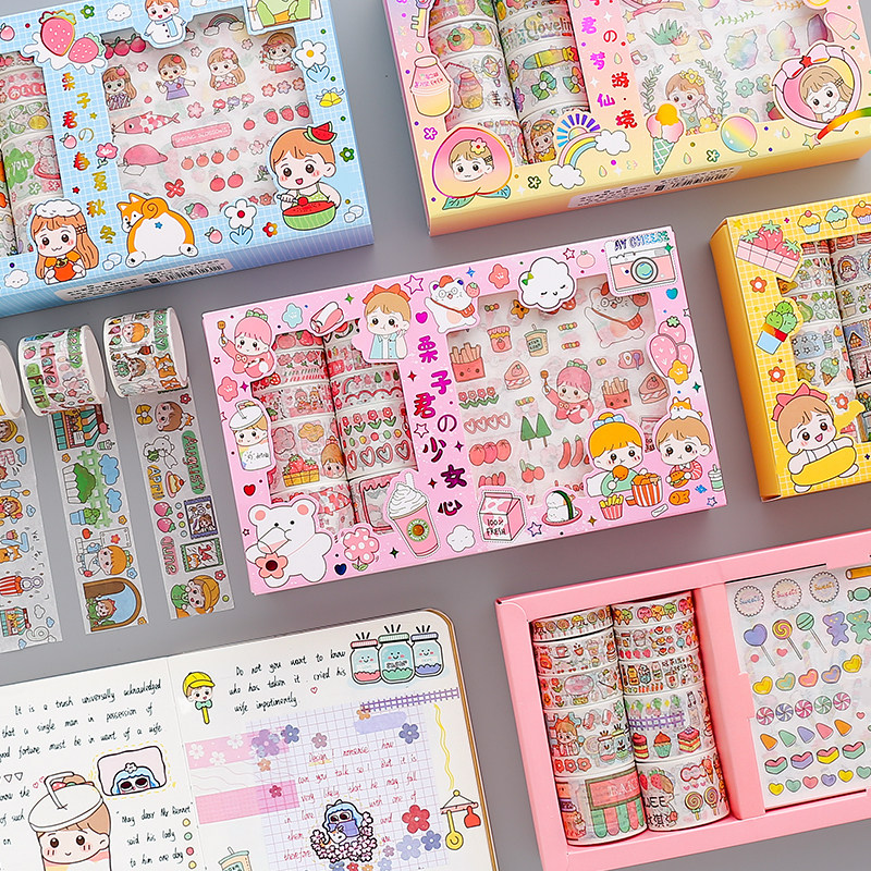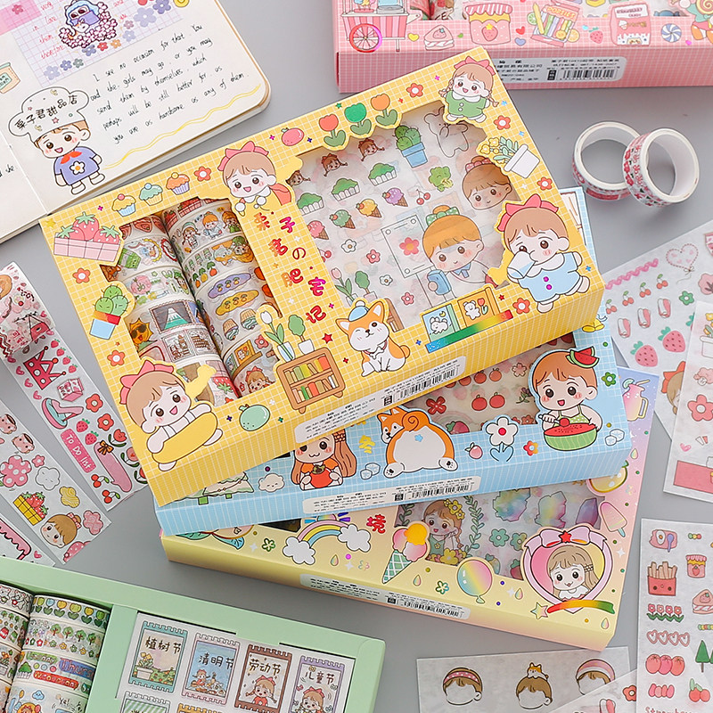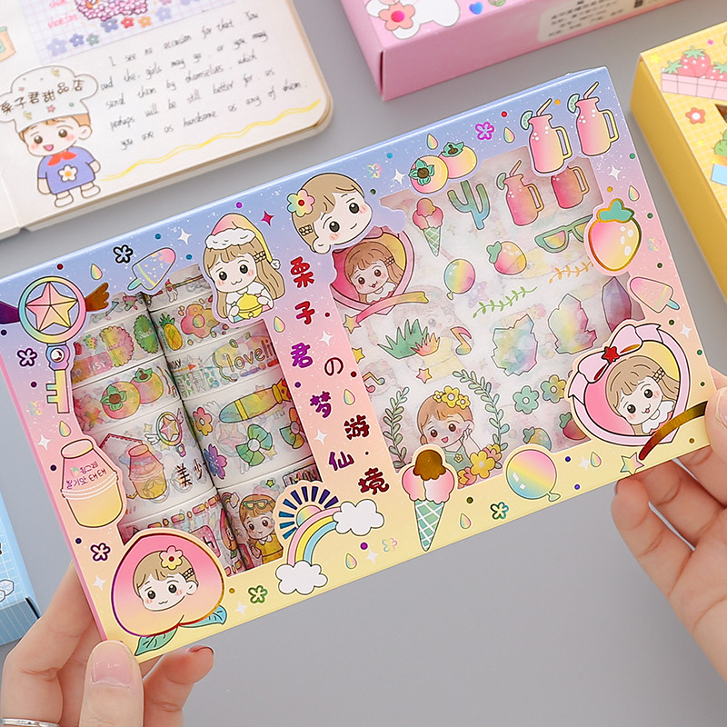 Наклейка, бумажная лента, подарочная коробка, мультяшный комплект, милый карманный блокнот, украшение для ногтей, принт