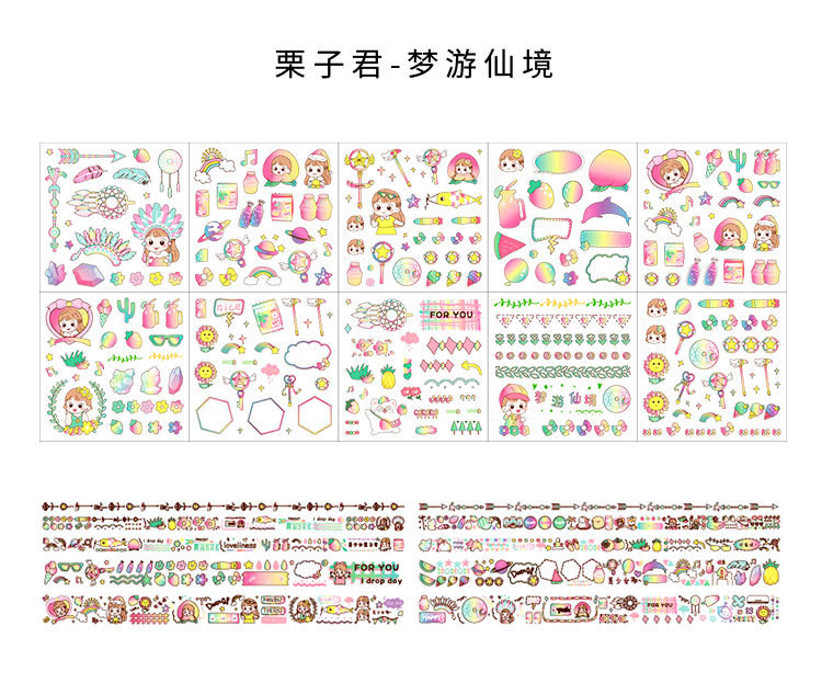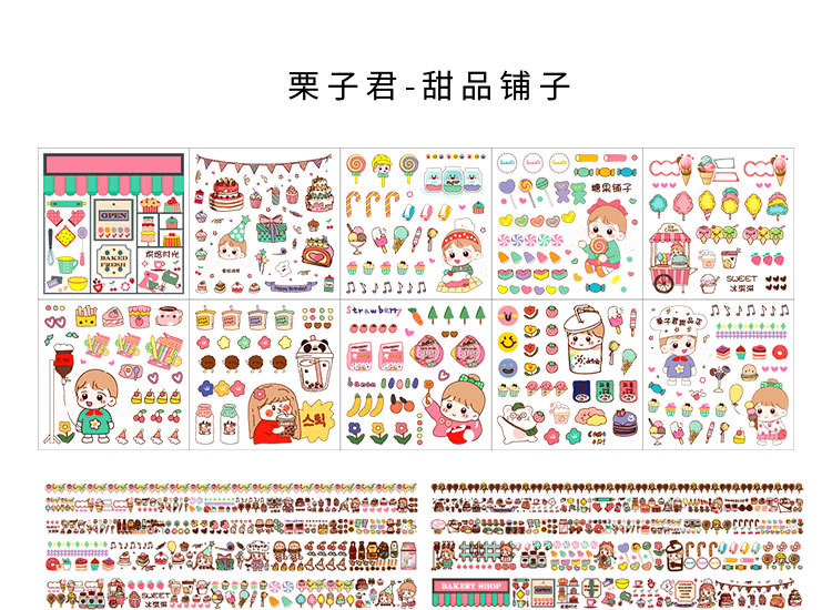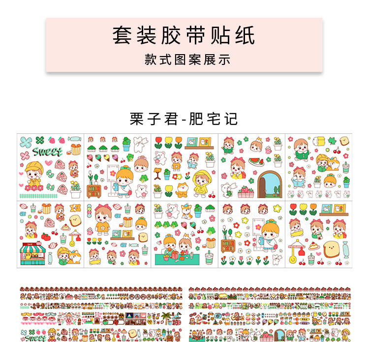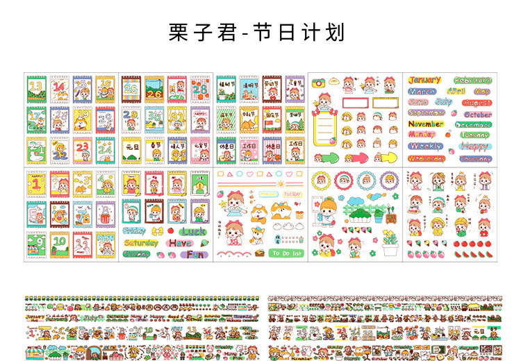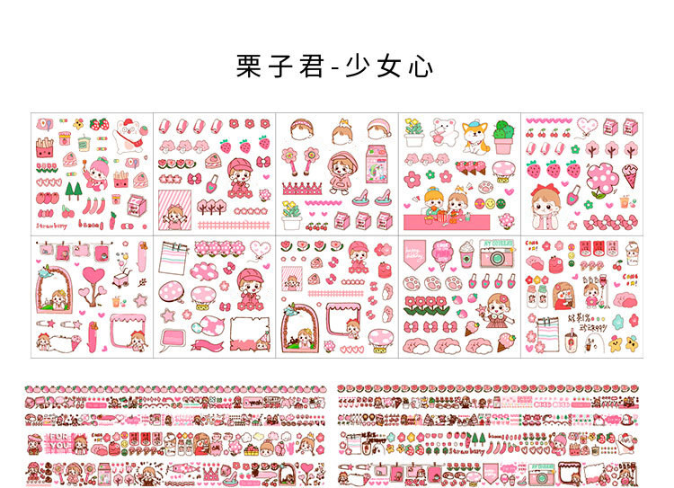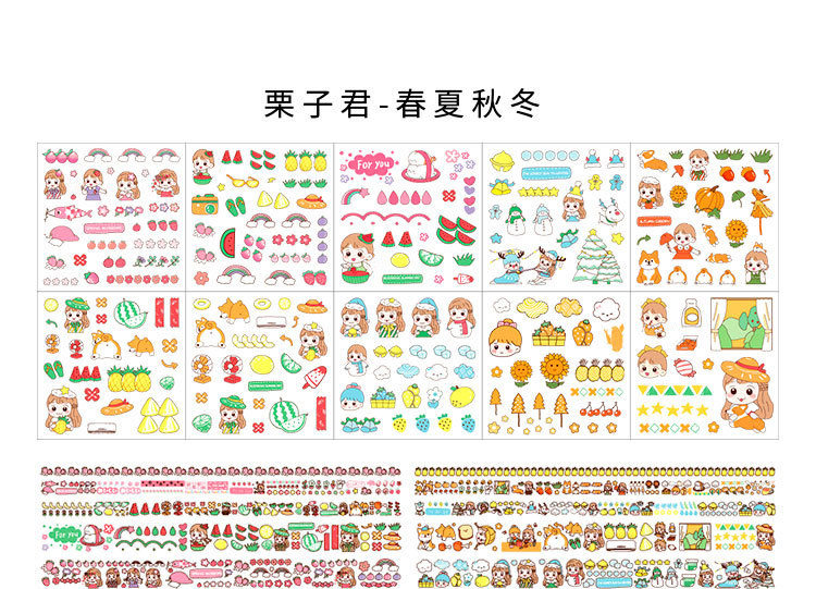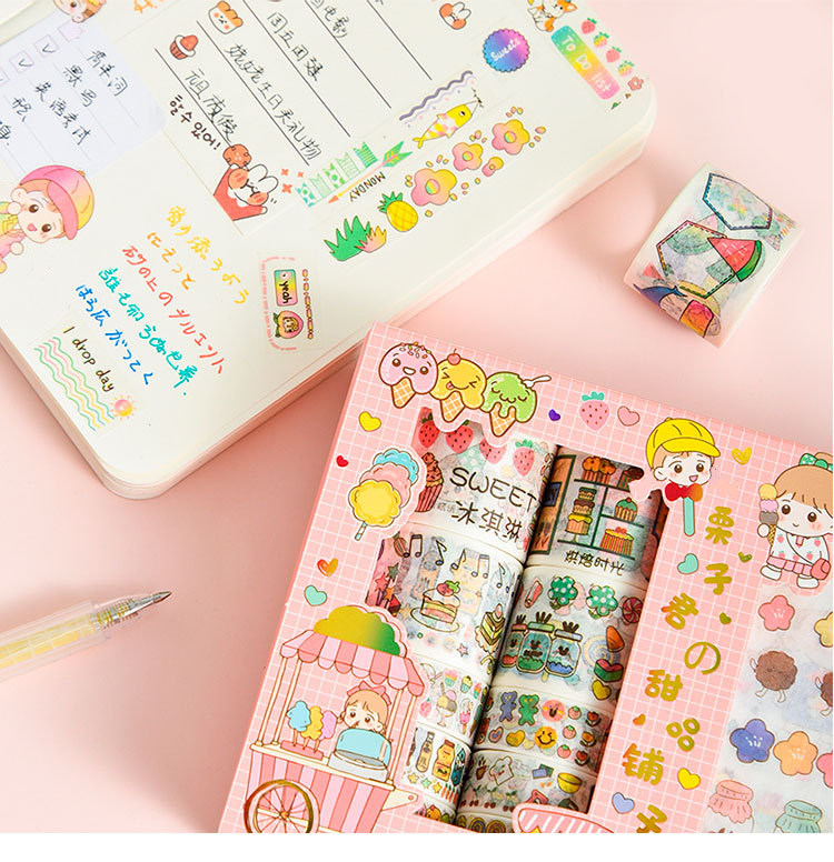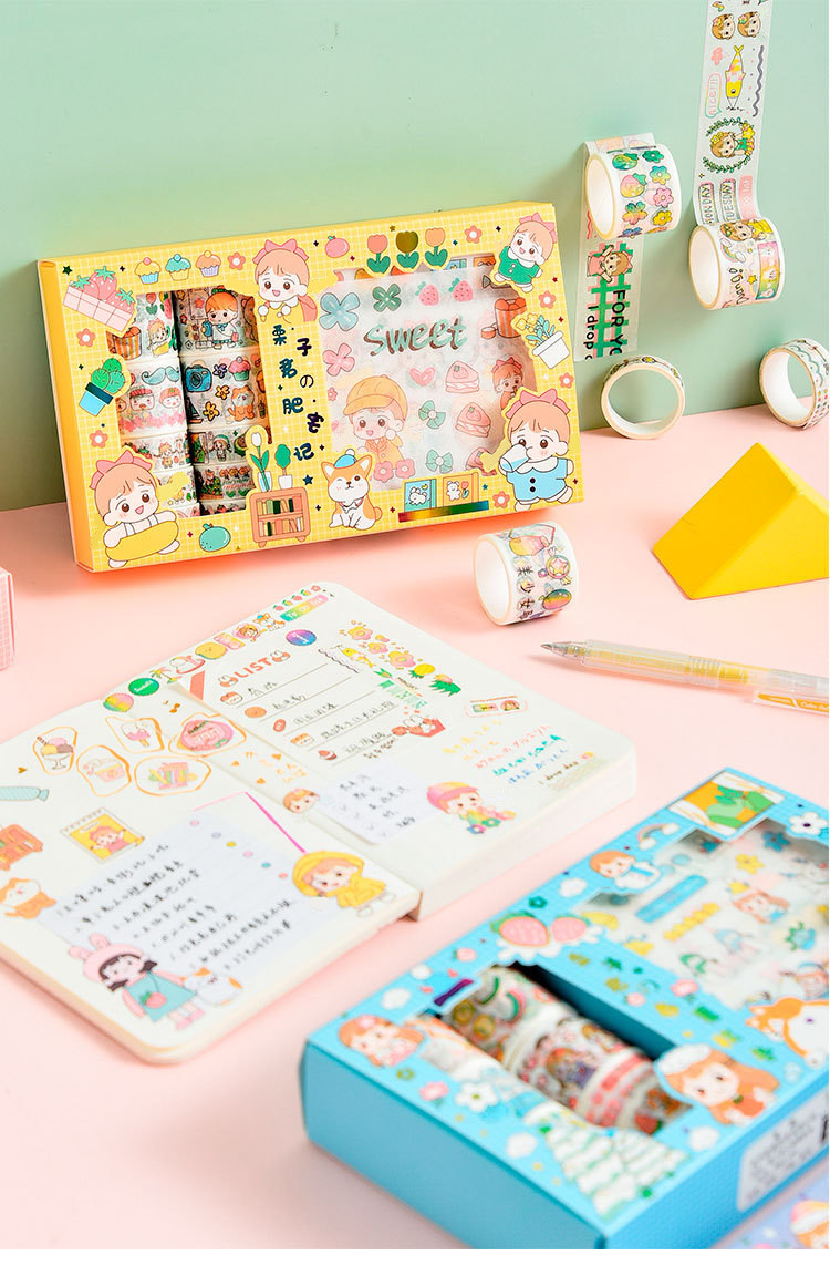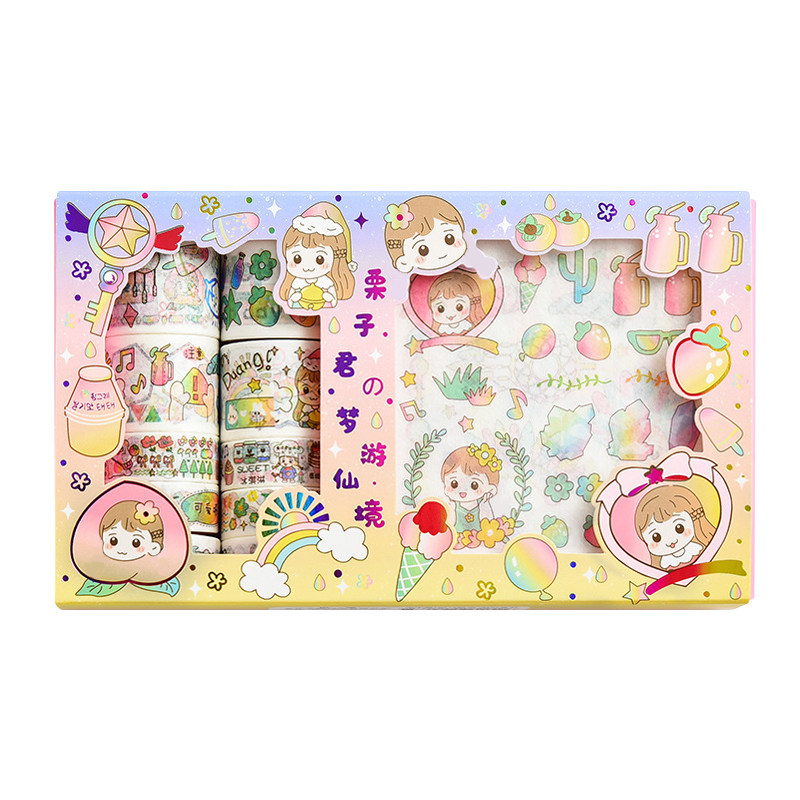 Наклейка, бумажная лента, подарочная коробка, мультяшный комплект, милый карманный блокнот, украшение для ногтей, принт