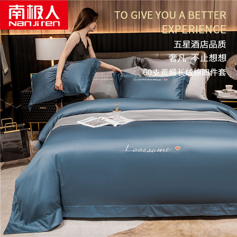 南极人 Хлопковый комплект, пододеяльник, 4 предмета, с вышивкой