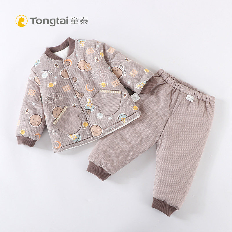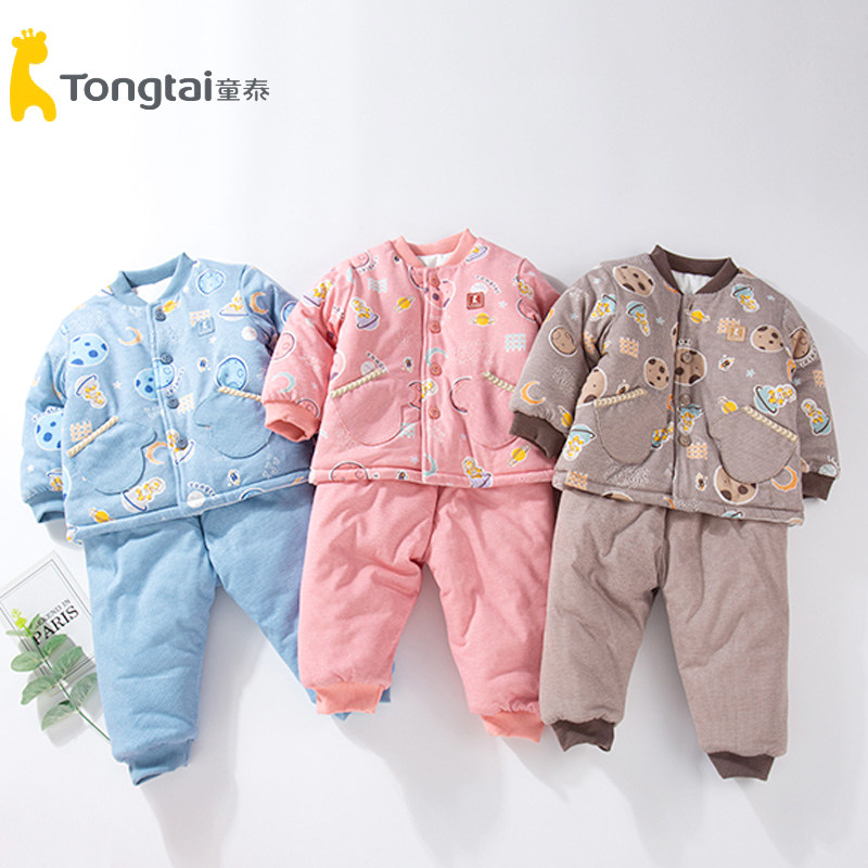 童泰 Демисезонный хлопковый комбинезон для раннего возраста подходит для мужчин и женщин для девочек, штаны, комплект, 5-24 мес., увеличенная толщина