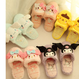 Мультяшные нескользящие утепленные зимние тапочки