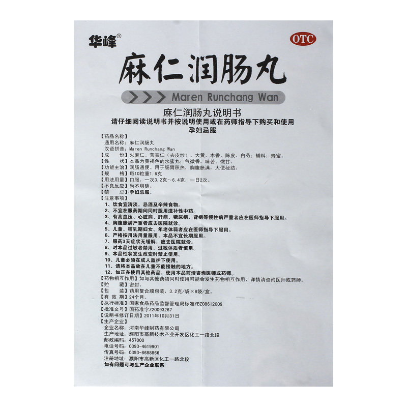 华峰 MA Renjun Cinestinal Pill 3.2g*8 мешков/коробка запора стула для детоксикации кишечника и очистки кишечного стула