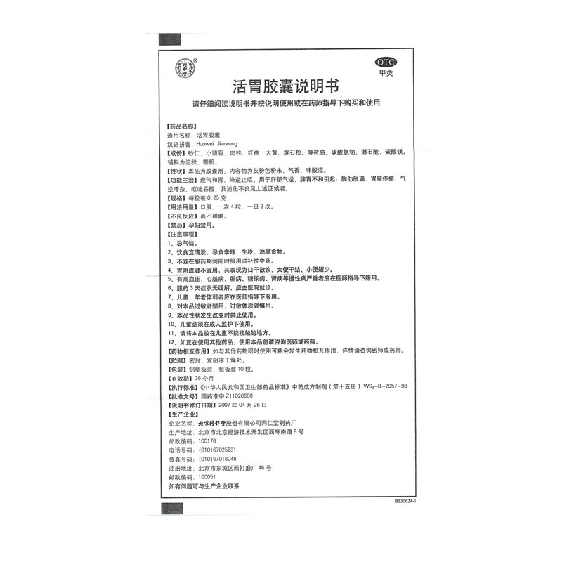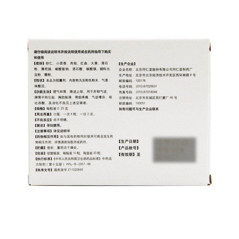 同仁堂 Живая капсула желудка 0,25 г*20 капсулы/ящик функциональное расстройство желудка и бедная селезенка и раздор желудка