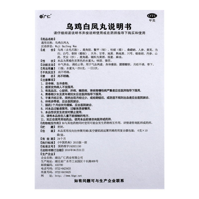 广仁 Wuji Baifeng таблетки 10 мешков менструации без регулирования ци и крови, ци и крови, тело тонкое, слабая талия, колено, мягкое и ци, ци и кровь