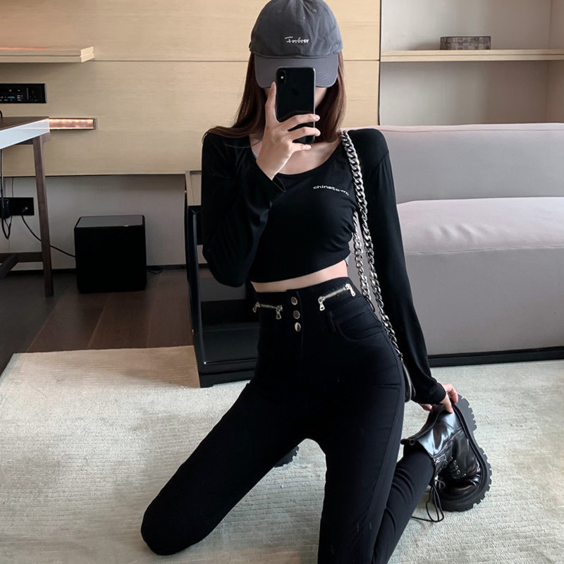 Tide, дизайнерские джинсы, приталенные штаны, эластичный черный карандаш, тренд сезона, 2021 года, новая коллекция, высокая талия, в обтяжку