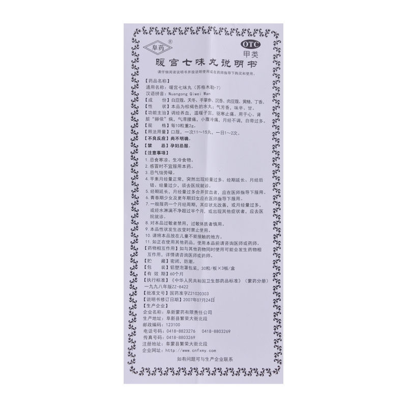 阜药 Nuangong Qiwei таблетки (Meng Ming: Socuel-7) 90 менструация без гинекологического воспаления теплый теплый матка