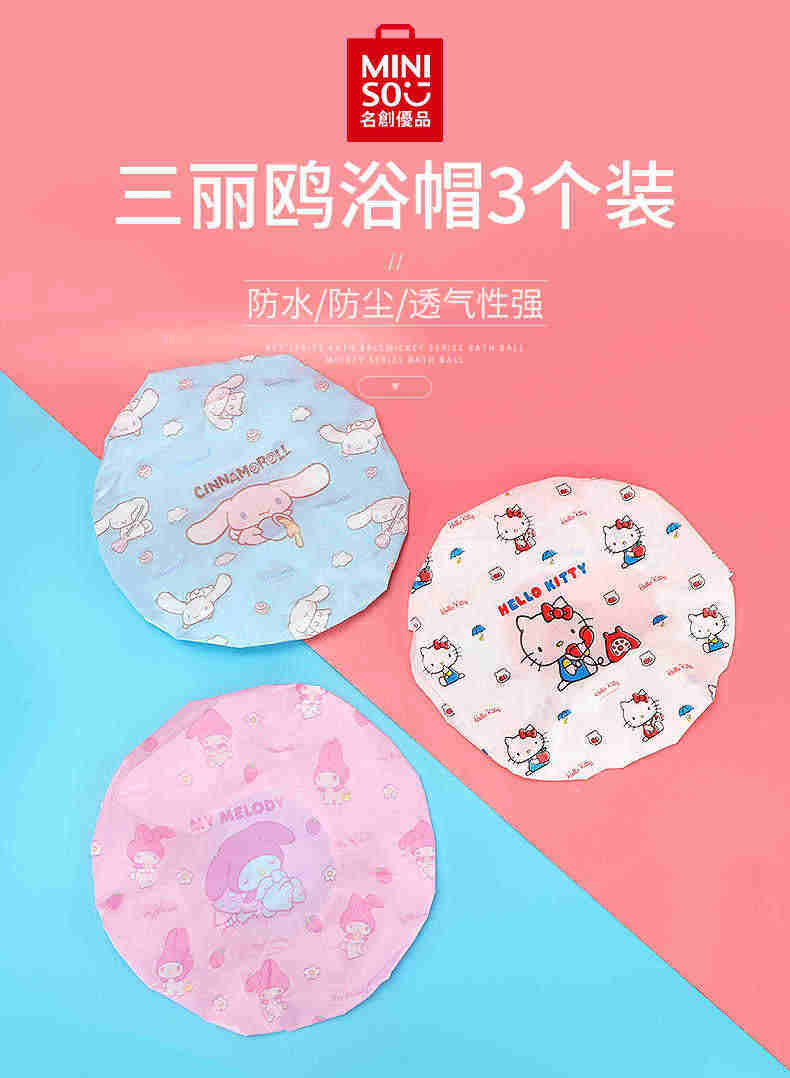 Miniso mingyin youpin sanrio bowla jade guogou kuromi Водонепроницаемый душ душ ванна Hawat Водонепроницаемая шляпа