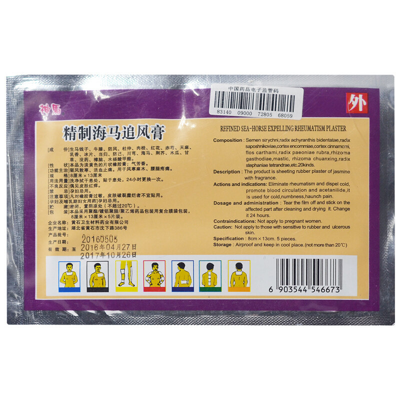 神马 Рафинированный гиппокамп, гоняющийся от крема 8 см*13 см*5 таблеток/мешок с ревматоидными кремовыми наклеек, паста сырости, боль в спине, паста, боль в ногах и холод w