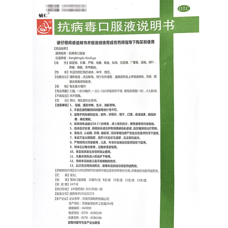 辅仁 Антивирусский пероральный раствор 10 Дань ветреный ветер Тепло, холод, тепло, тепло, насморк, горло, боль, желтая мокрота