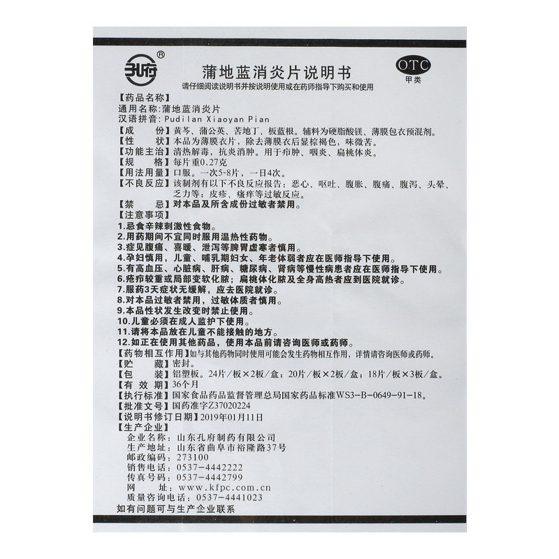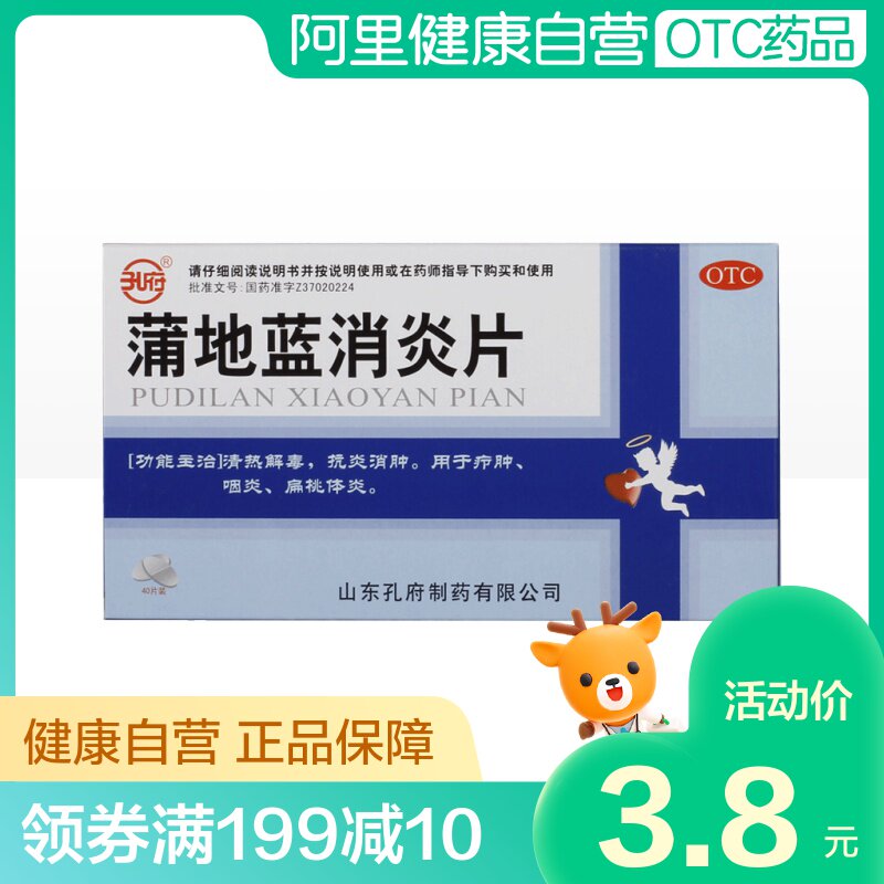 孔府 ПУД -синий состояние таблетки 0,27 г*40 Таблетки/коробка ветра тепло, холод, глоточный, прозрачный тепло, детоксикация горла и боль