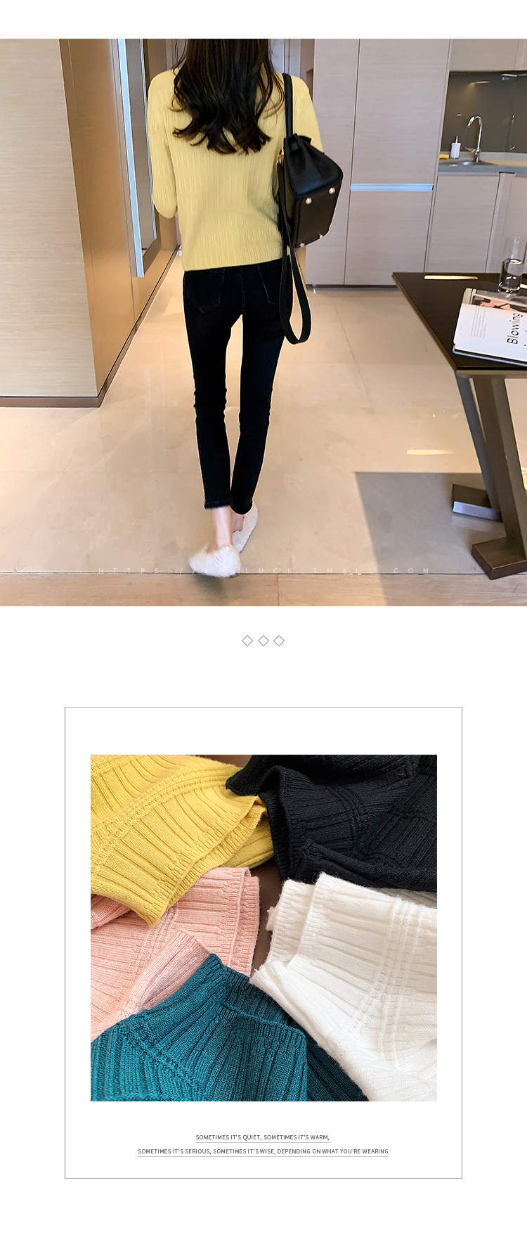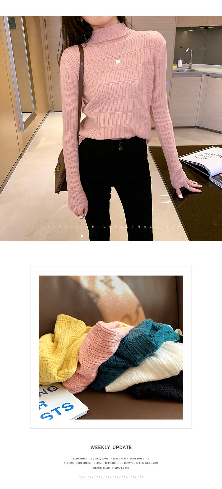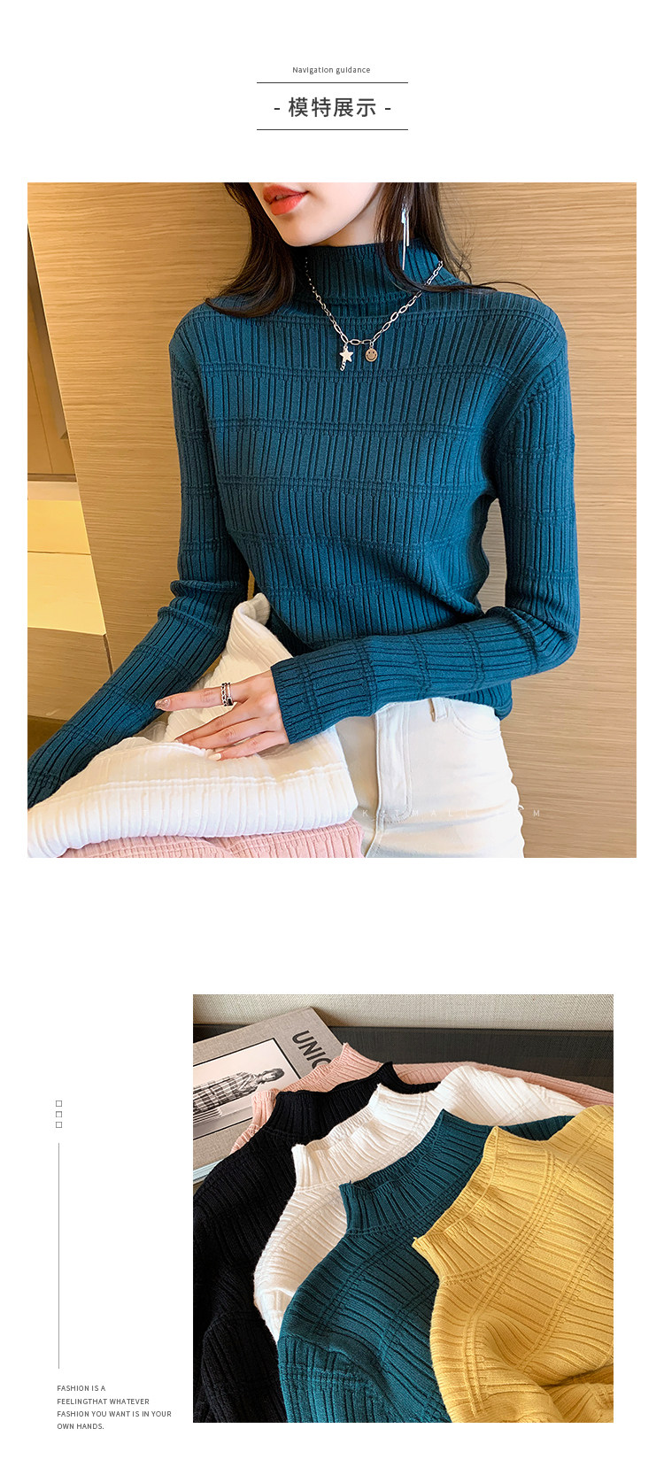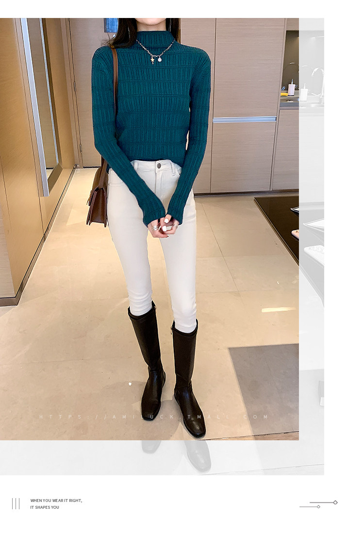 Демисезонный свитер, приталенный трикотажный лонгслив, высокий воротник