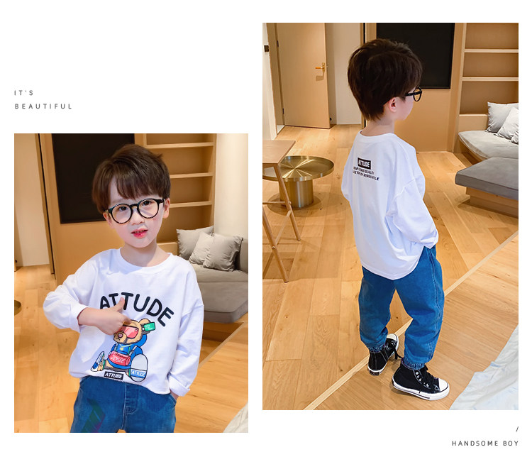 左西 Летняя одежда, детский базовый приятный телу лонгслив для мальчиков, подходит для подростков, коллекция 2021, в западном стиле
